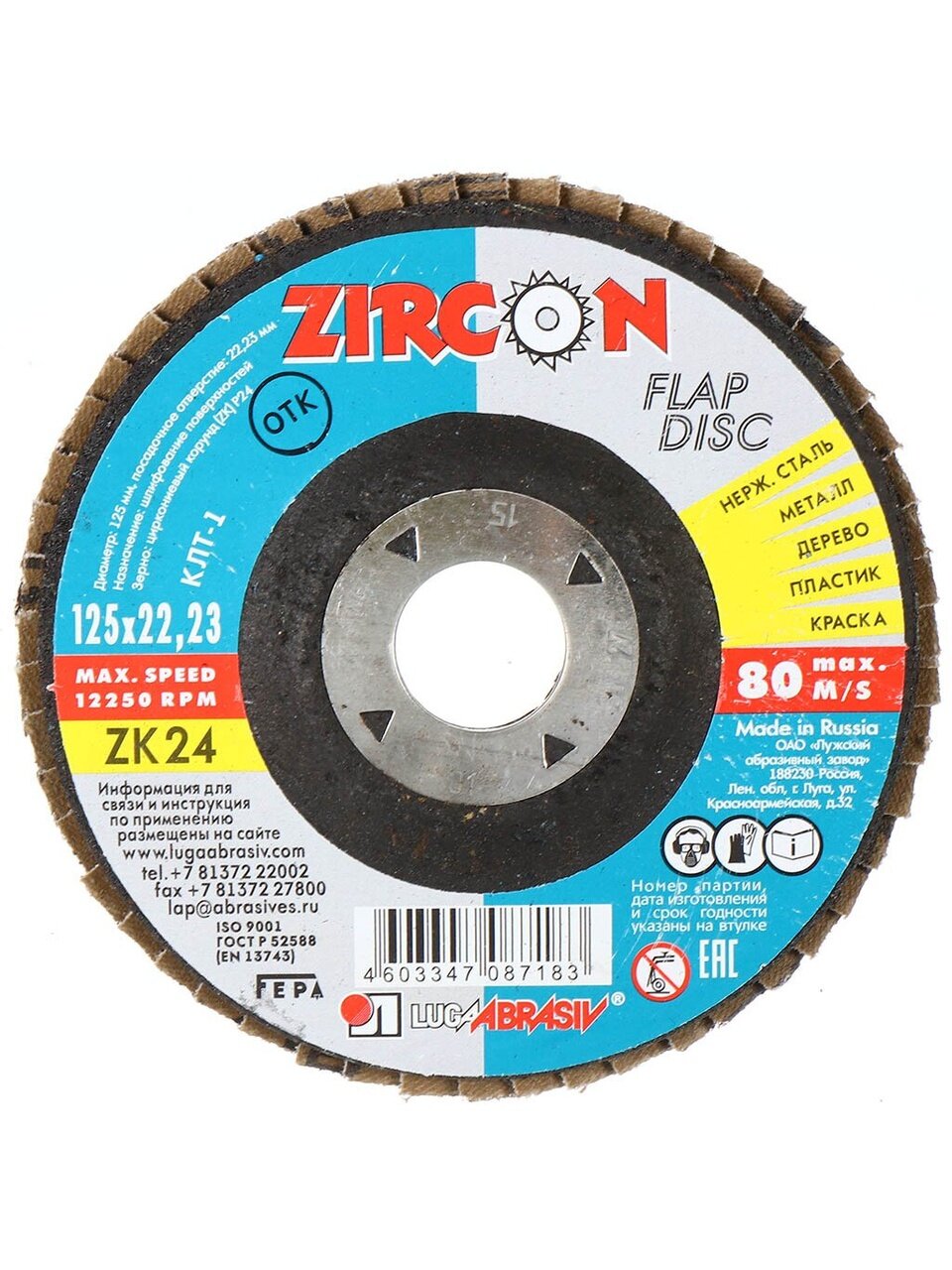 Вы можете приобрести «Круг лепестковый торцевой КЛТ1 для УШМ, LugaAbrasiv, диаметр 125 мм, посадочный диаметр 22 мм, зернистость ZK24, шлифовальный» и другие товары в нашем интернет-магазине в Липецке по низким ценам и с бесплатным самовывозом.