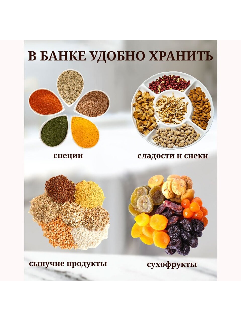 Предназначена для хранения различных сыпучих продуктов.