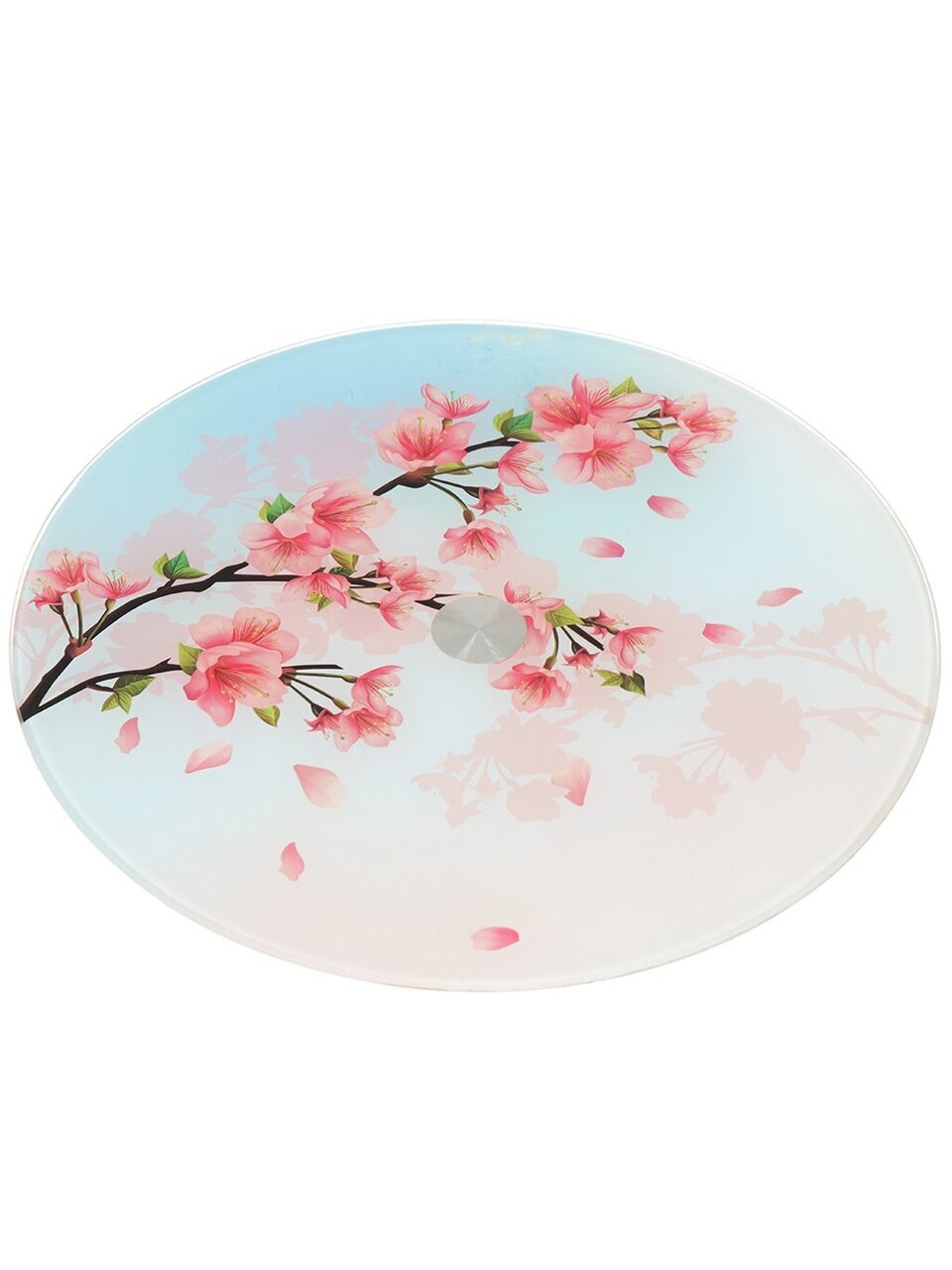 Вращающийся механизм упрощает нарезку и подачу, стекло не впитывает запахи и не окрашивается, рисунок сакуры делает блюдо универсальным для подарка и сервировки.