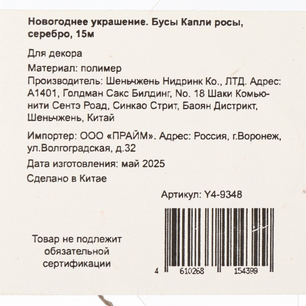 Бусы Капли росы, серебро, 15 м — стильный акцент для декора, подарка и праздничного оформления. Долговечные, универсальные, выгодная цена!