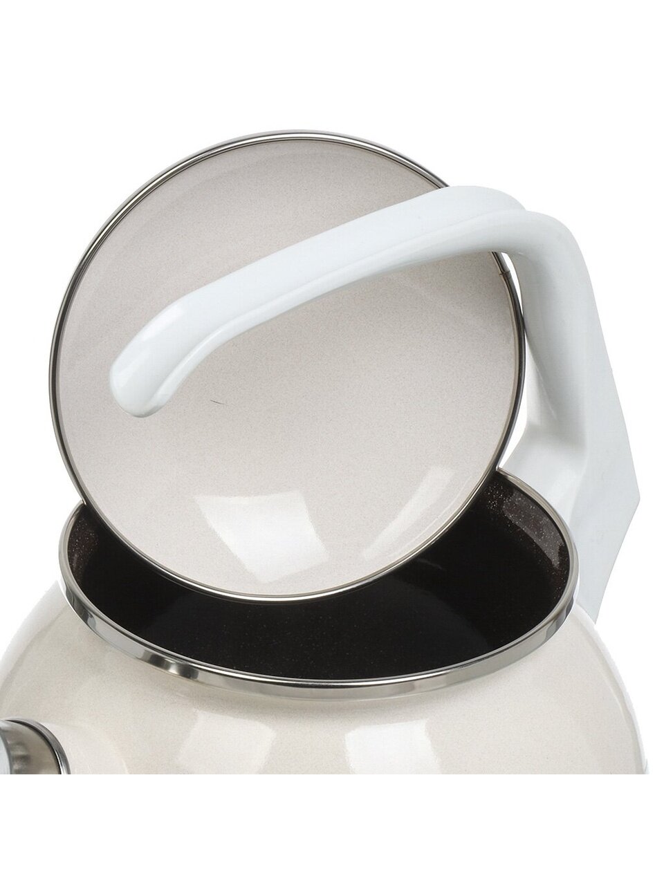 Чайник выполнен из высококачественной стали с эмалированным покрытием, что обеспечивает долговечность и устойчивость к повреждениям. Объем 2.5 литра позволяет приготовить достаточное количество горячих напитков для всей семьи или компании друзей. Удобная пластиковая ручка и наличие кнопки для открытия носика делают использование чайника простым и безопасным.