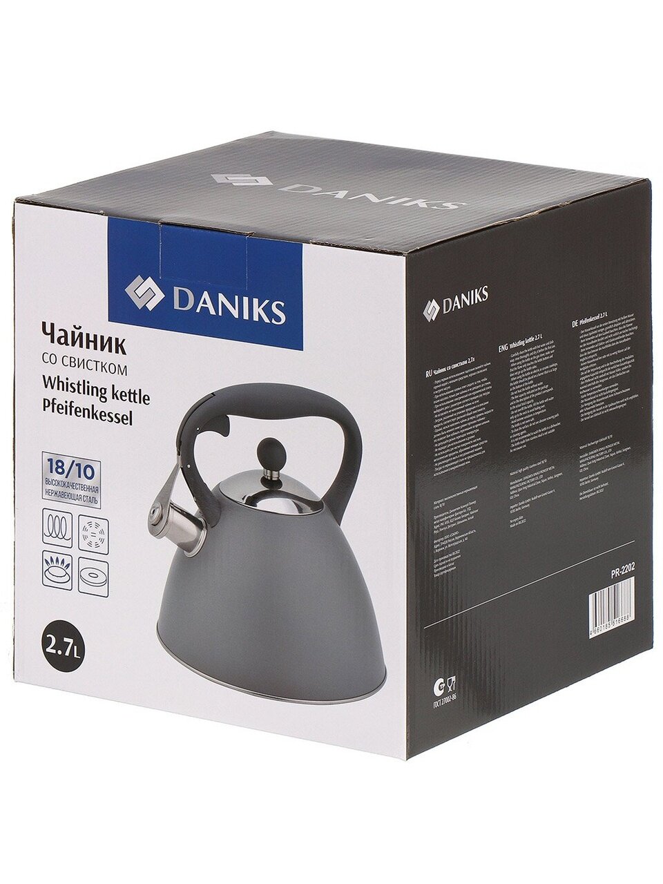 Вы можете приобрести «Чайник нержавеющая сталь, 2.7 л, со свистком, ручка бакелитовая, с силиконовым покрытием, Daniks, индукция, PR-2202» и другие товары в нашем интернет-магазине в Белгороде по низким ценам и с бесплатным самовывозом.