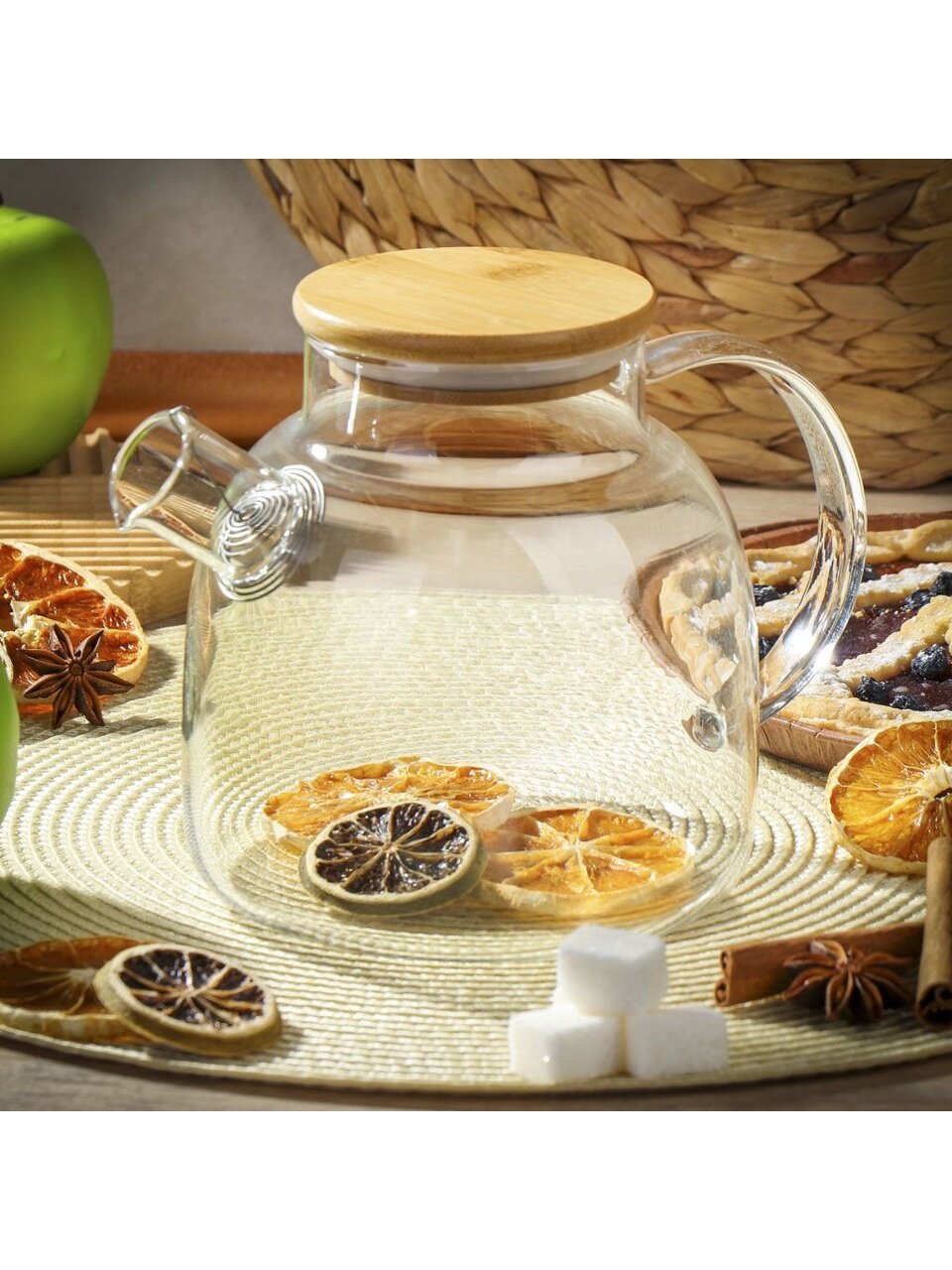 Чайник можно использовать как для заваривания чая, так и различных травяных настоев, а удобная крышка поддержит нужную температуру. Изделие изготовлено по современной технологии из высокопрочного стекла. Материал чайника отличается износоустойчивостью и легкостью, не впитывает запахи, прост в использовании и мойке. Встроенный в носик фильтр-пружинка из нержавеющей стали задерживает чаинки и кусочки фруктов в чайнике. Прозрачный корпус позволит наблюдать за магическим процессом раскрытия чайного листа, цветов и фруктов. Стеклянный заварочный чайник станет идеальным подарком любимым, друзьям, родным и коллегам.