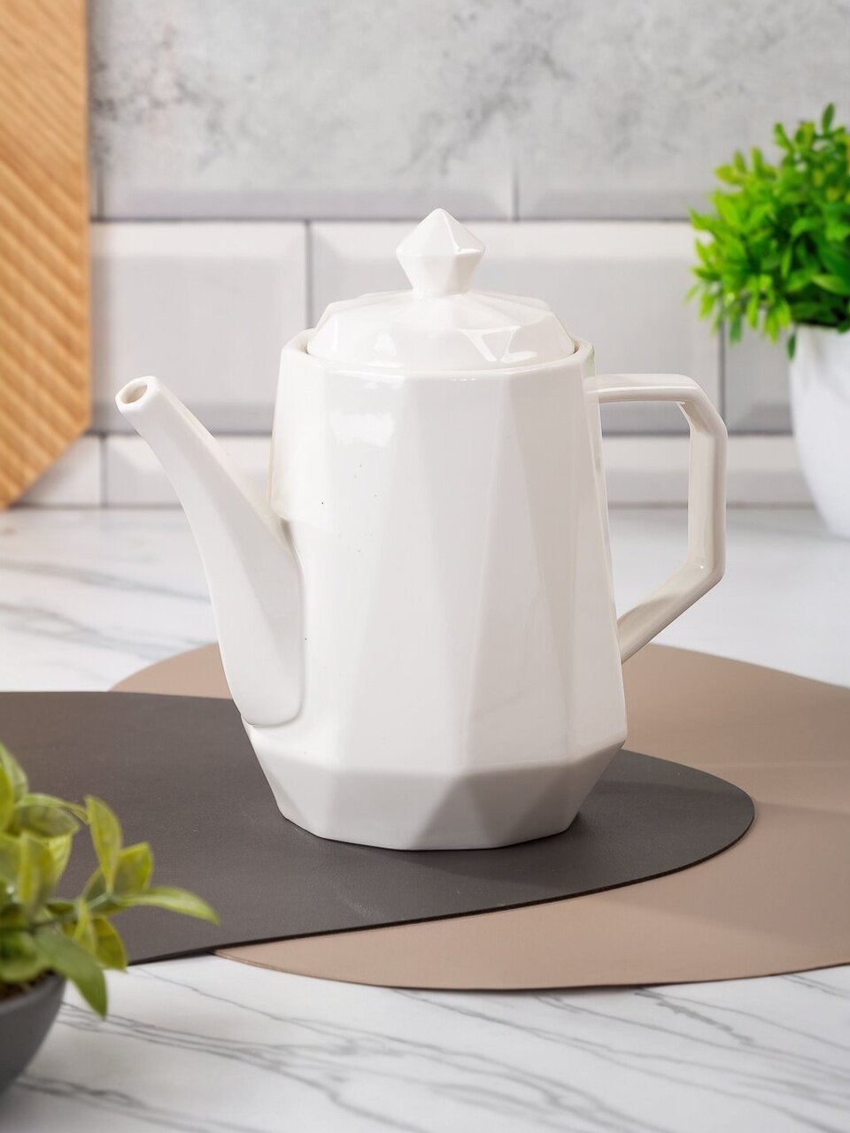 Стильный рельефный дизайн и прямоугольная форма делают его уникальным элементом декора, который будет привлекать внимание гостей и радовать глаз каждый день. Белый цвет чайника гармонично вписывается в любой интерьер, от классического до современного, подчеркивая ваш утонченный вкус и внимание к деталям.