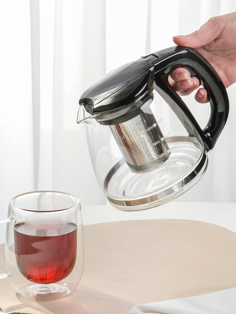 Стильный и эргономичный заварочный чайник. Чай дольше остается горячим, а полезные и ароматические вещества полностью сохраняются в напитке. Простой и удобный чайник поможет Вам приготовить крепкий, ароматный чай. Удобный фильтр не позволит чаинкам или мелким частям отвара попасть в напиток.