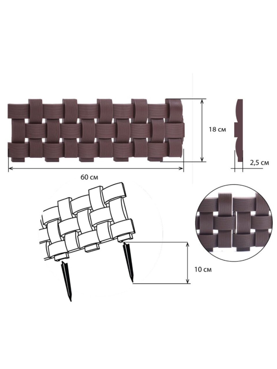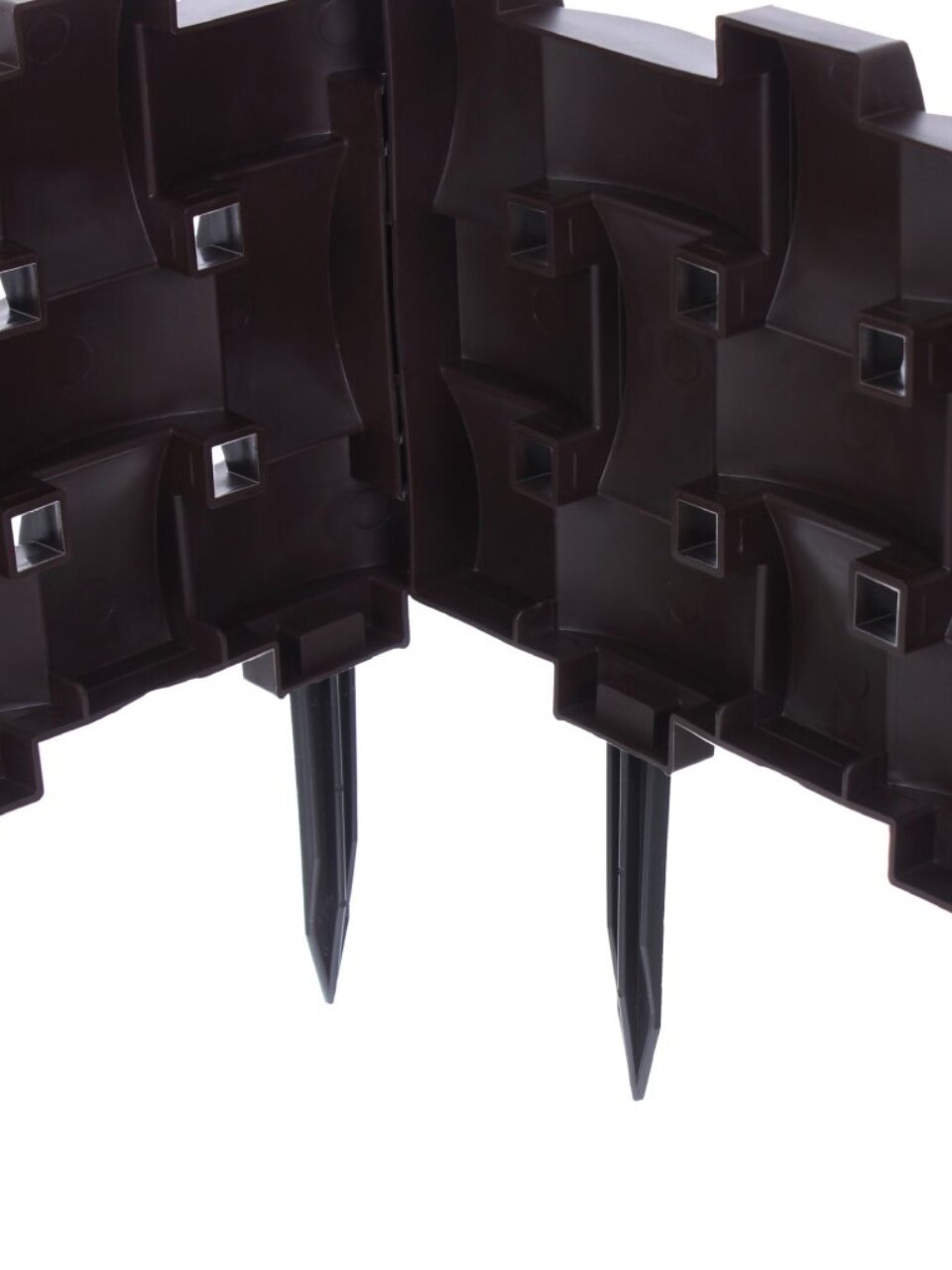 - Эстетичный вид: забор выполнен в привлекательном коричневом цвете, который гармонично впишется в любой садовый интерьер.