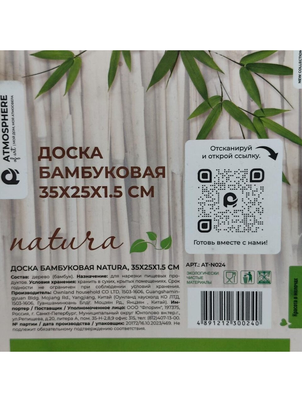 Вы можете приобрести «Доска разделочная дерево, 35х25х1.5 см, прямоугольная, Atmosphere, Natura, AT-N024» и другие товары в нашем интернет-магазине в Клинцах по низким ценам и с бесплатным самовывозом.