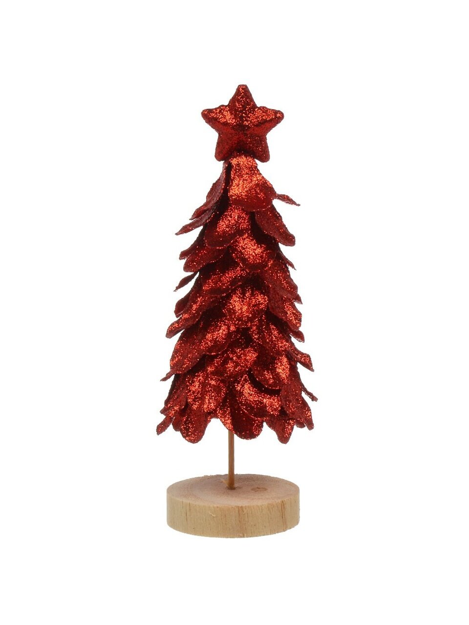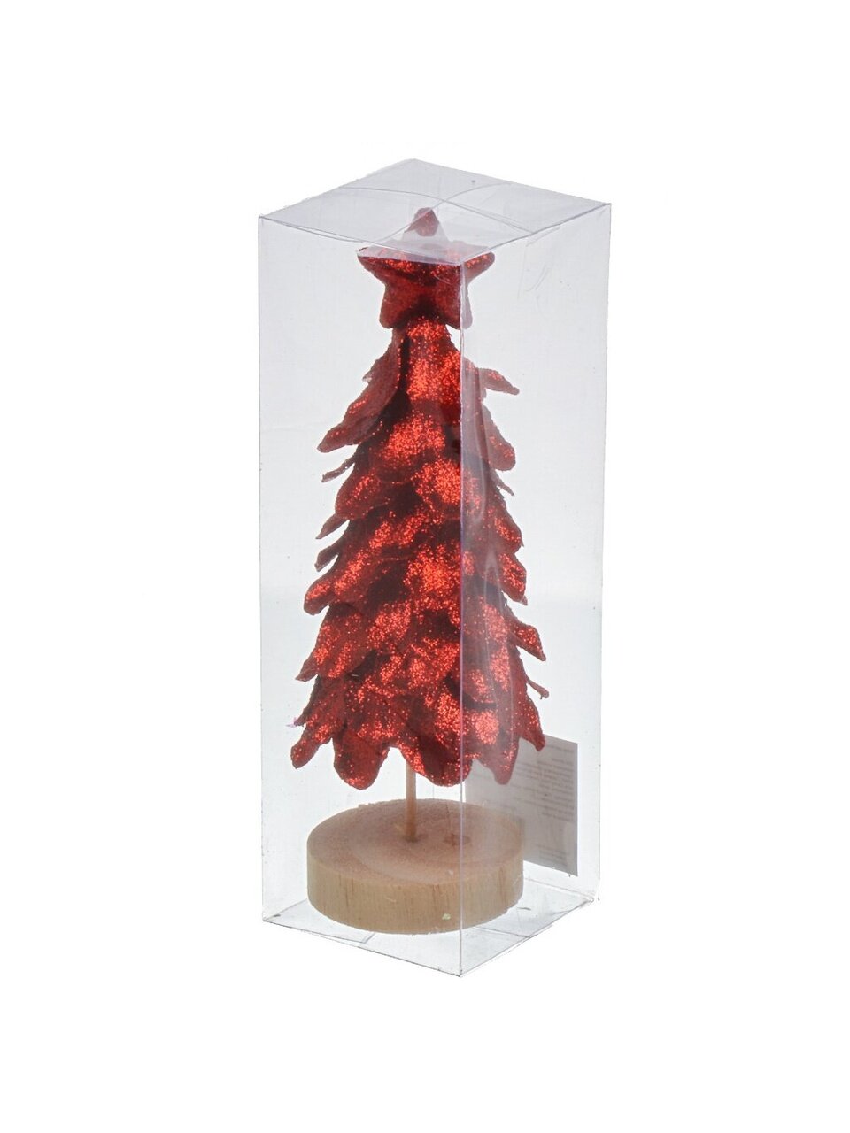 Настольная новогодняя елка 18 см в красном цвете — стильный акцент для дома или офиса: компактно украшает, не требует сборки, подходит для подарка и декора.