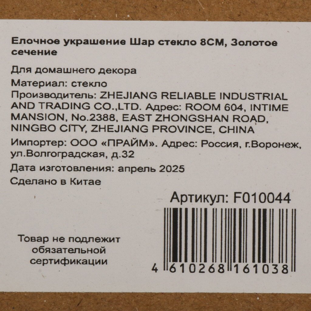 Вы можете приобрести «Елочное украшение Золотое сечение, 8 см, стекло, F010044» и другие товары в нашем интернет-магазине в Обнинске по низким ценам и с бесплатным самовывозом.