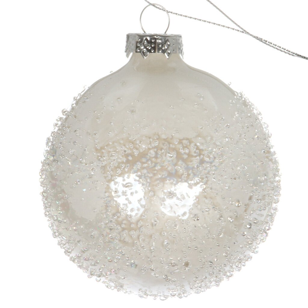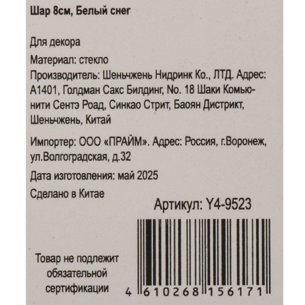 Шар стекло 8см, Белый снег Y4-9523 — элегантный новогодний декор из настоящего стекла для стильного оформления дома или подарка. Безопасная доставка, оригинальный дизайн, выгодная цена.