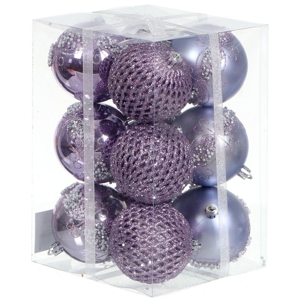Елочные шары 8 см, 12 шт, лавандовые: стильный набор для быстрой и безопасной новогодней декорации дома, улицы или дачи. Пластик — не бьётся, подходит детям.