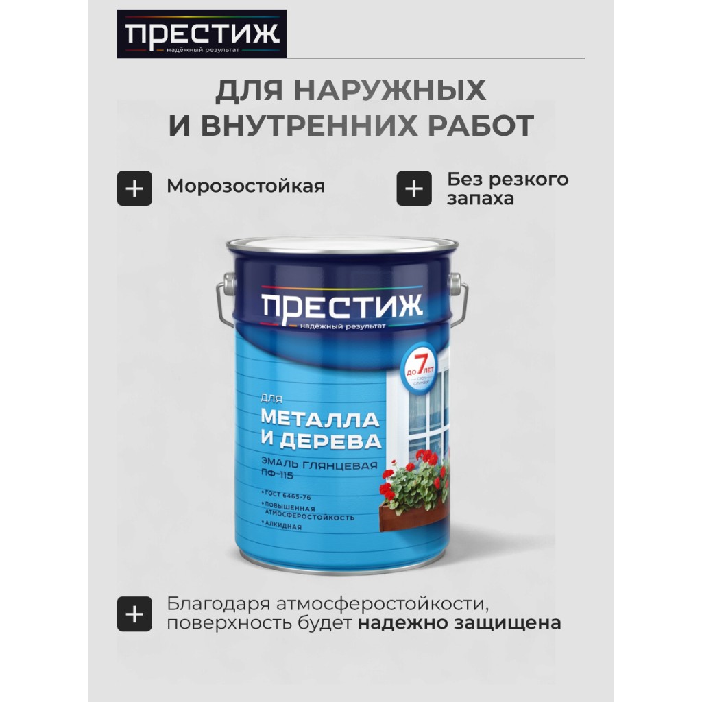 Эмаль Престиж ПФ-115 создана для обработки металлических, деревянных и других поверхностей как внутри, так и снаружи помещений. Она образует гладкое, глянцевое, устойчивое к атмосферным воздействиям покрытие, которое защищает и декорирует поверхность.