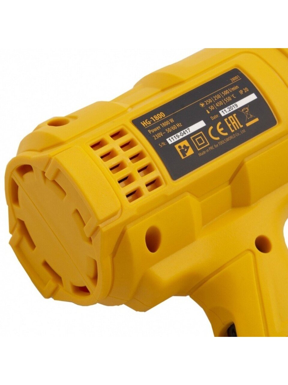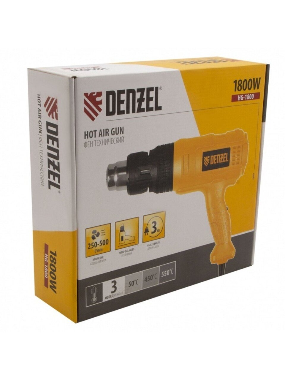 Вы можете приобрести «Фен строительный Denzel, HG-1800, 1800 Вт, 550 л/мин, 50 °C, 550 °C, 3 режима, 28001» и другие товары в нашем интернет-магазине в Армавире по низким ценам и с бесплатным самовывозом.