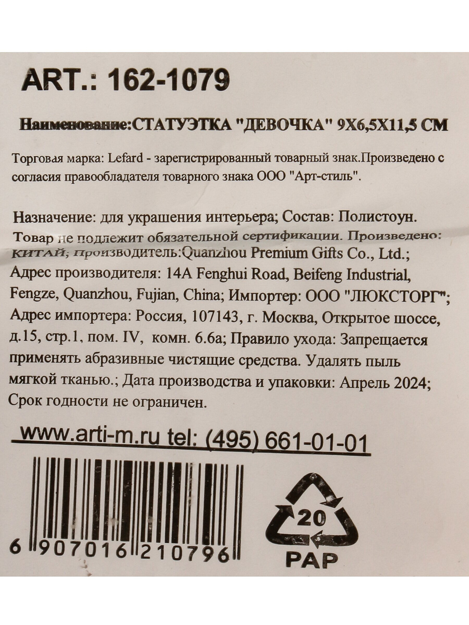 Вы можете приобрести «Статуэтка полистоун, Девочка, 9х6.5х11.5 см, Lefard, 162-1079» и другие товары в нашем интернет-магазине в Орле по низким ценам и с бесплатным самовывозом.