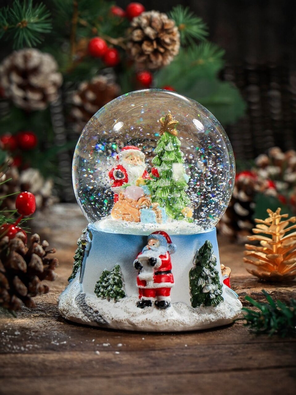 - Уникальный новогодний шар со снегом — эффектная декорация, создающая атмосферу праздника;