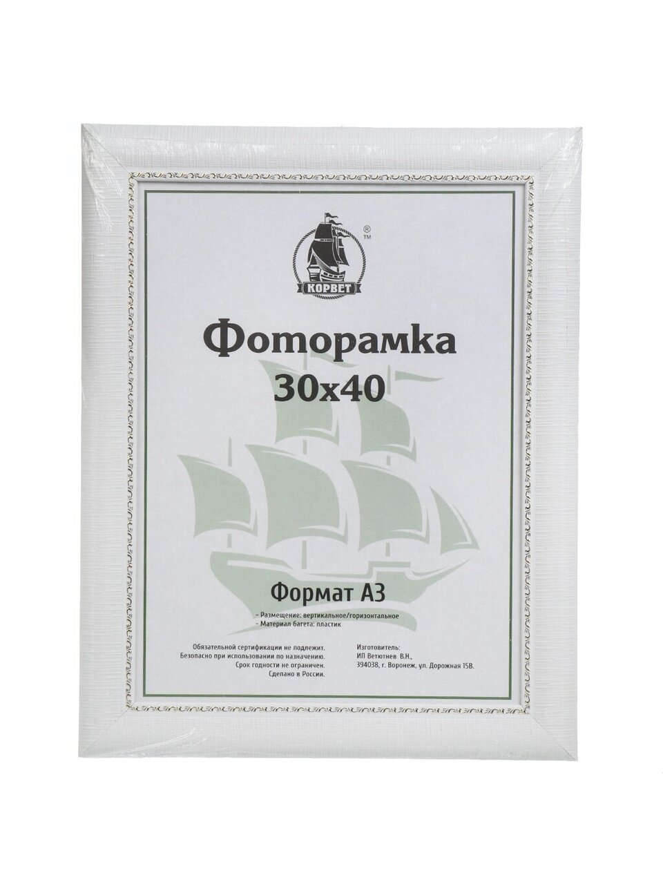 Фоторамка 30х40 см, пластик, белая, с пленкой ПЭТ, 4306C2