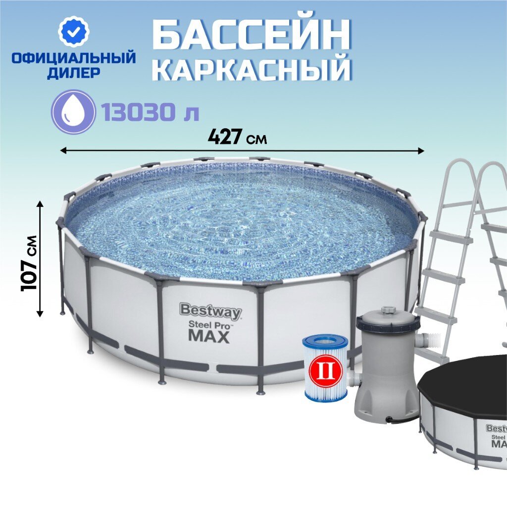 Откройте для себя идеальное решение для отдыха на даче с каркасным бассейном Bestway Steel Pro Max. Этот бассейн каркасный диаметром 427 см и высотой 107 см станет центром вашего летнего отдыха, предоставляя возможность насладиться освежающими водными процедурами прямо на вашем участке. С объемом 13030 литров, он идеально подходит для всей семьи, а его надежная конструкция обеспечивает долгосрочную эксплуатацию.
