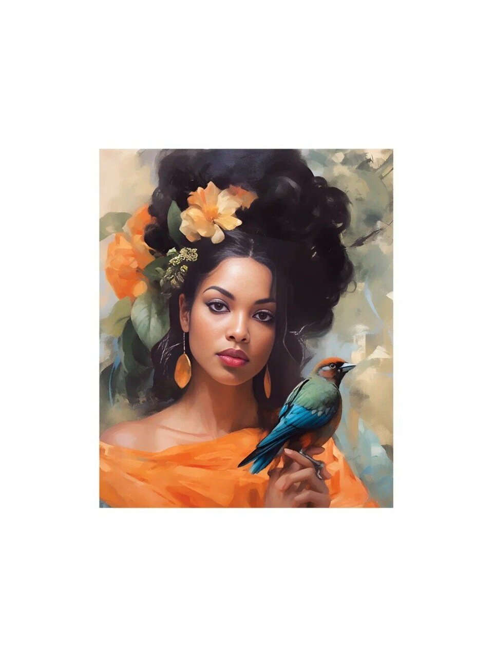 Изысканная картина "Девушка с птицей" выполнена с высоким качеством и вниманием к деталям, что делает ее не просто украшением, а настоящим произведением искусства. Ее размеры позволяют использовать ее как самостоятельный элемент декора или в сочетании с другими картинами для создания галереи на стене.