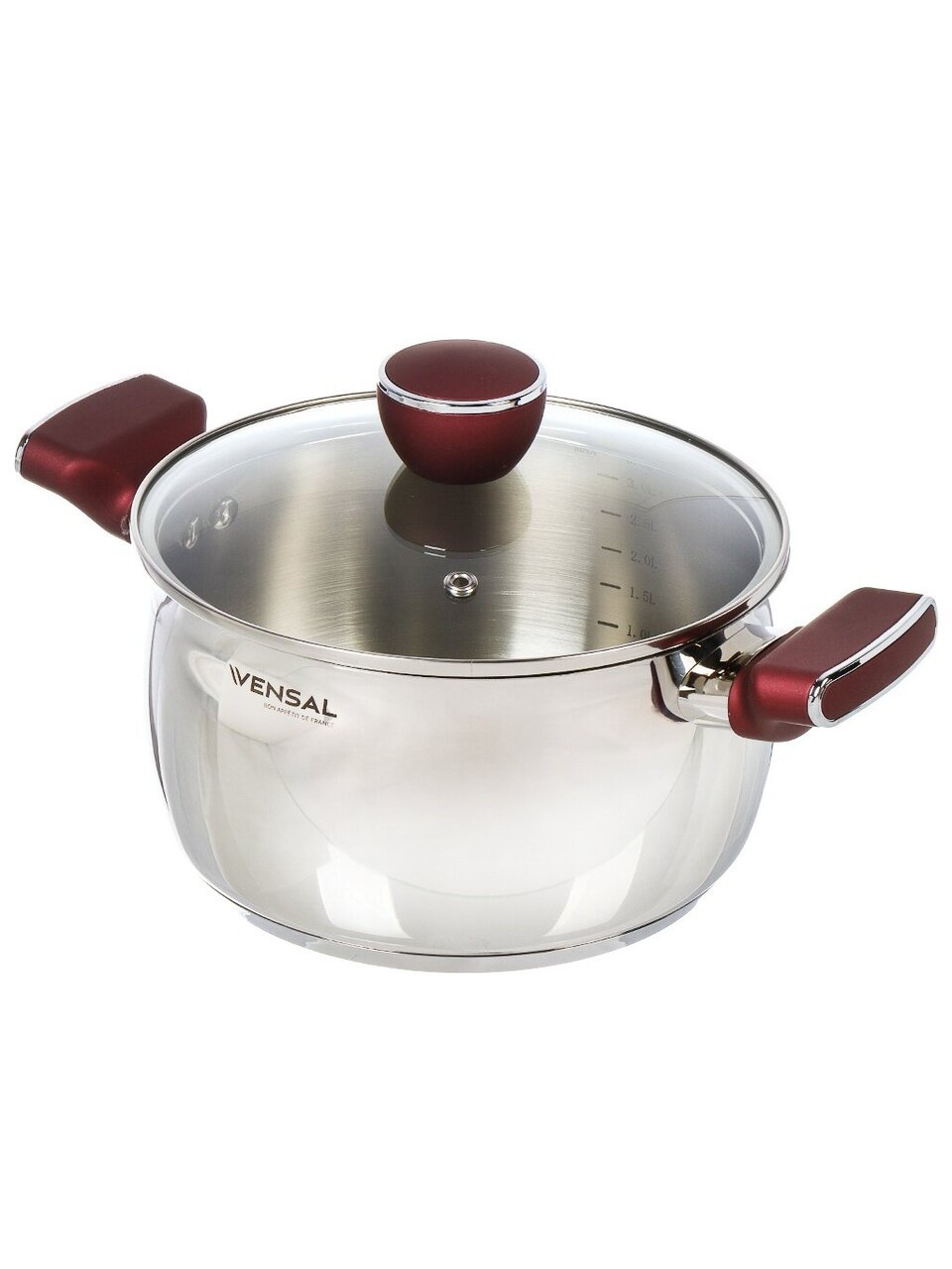 Кастрюля из нержавеющей стали Vensal Joli 3.3 л — премиум-решение для индукции и любых плит: долговечность 25 лет, мерная шкала, стеклянная крышка.