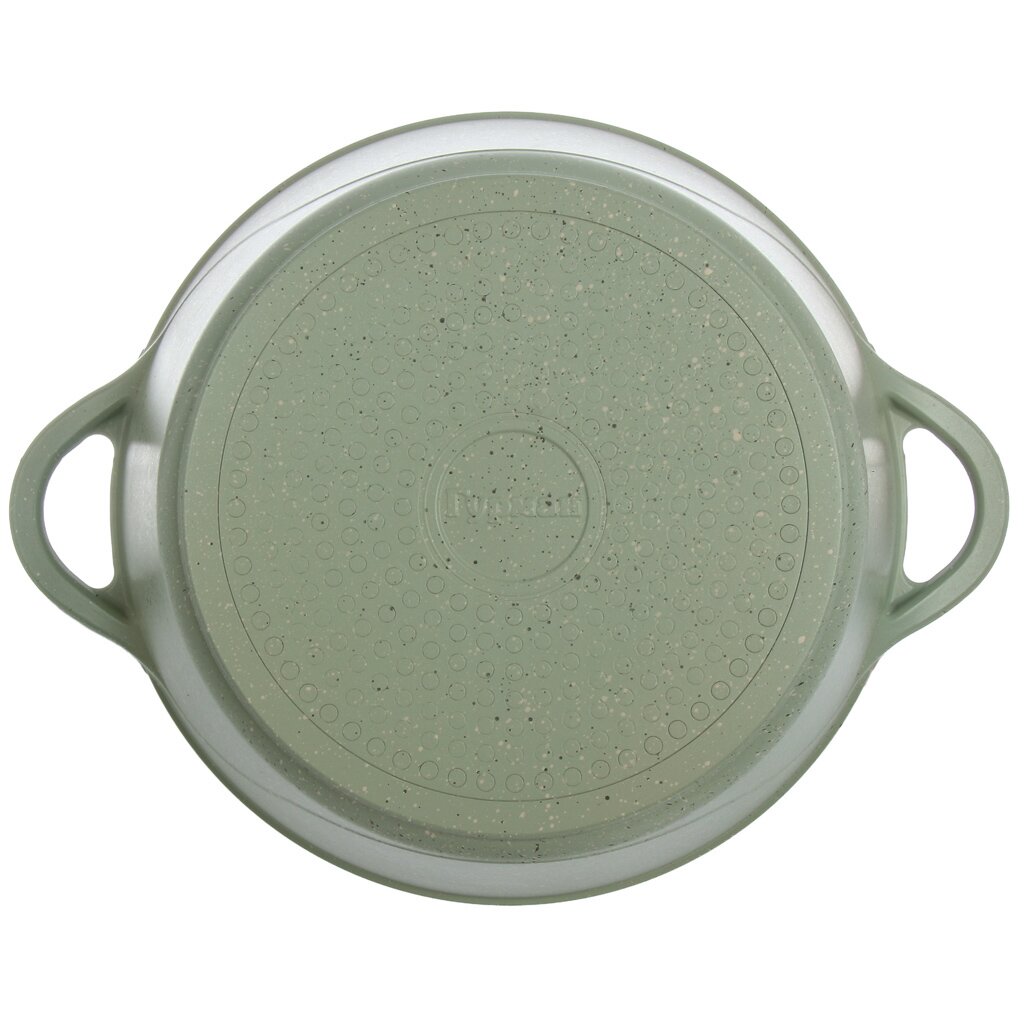 Кастрюля Гурман Мята 5 л — это современное решение для тех, кто ищет, какую кастрюлю выбрать для повседневной готовки. Прочный алюминиевый корпус с толстым дном (5,5 мм) обеспечивает быстрый и равномерный нагрев на любых плитах, включая индукционные. Гранитное антипригарное покрытие позволяет готовить без масла и легко отмывать посуду после использования, что особенно важно для семей с детьми или тем, кто ценит время. Стеклянная крышка с выпускным клапаном сохраняет аромат блюд и предотвращает выкипание, а мятный цвет добавляет свежести интерьеру кухни.