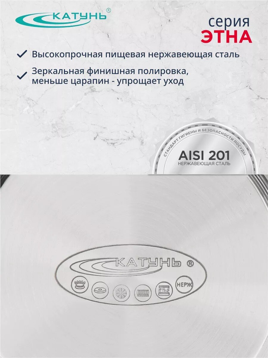 Кастрюля из нержавеющей стали 3.5 л с капсульным дном Катунь Этна — оптимальный выбор для индукционных и любых плит: готовьте суп, кашу или пельмени быстро, удобно и безопасно.