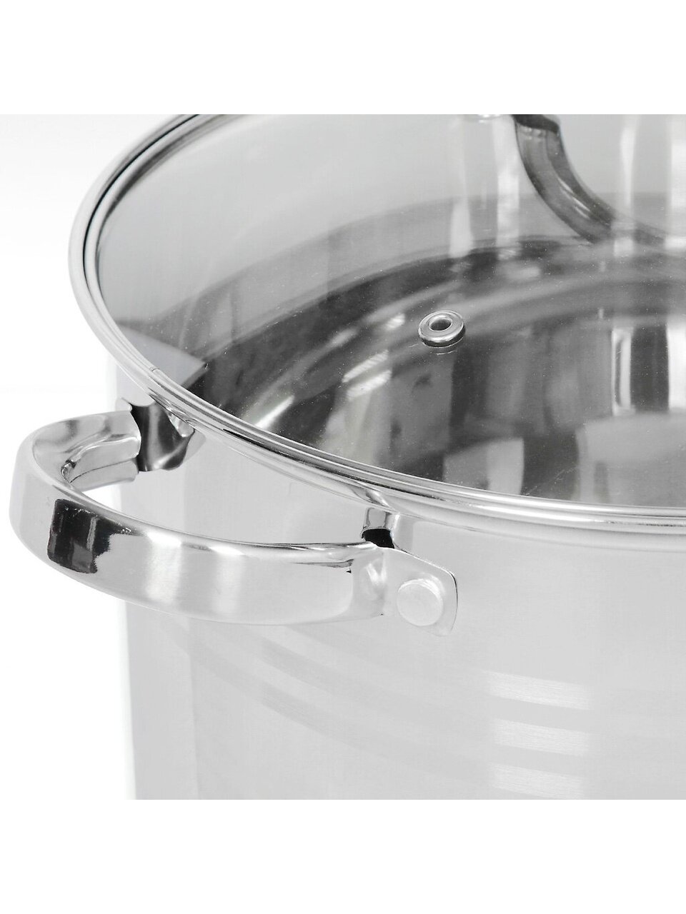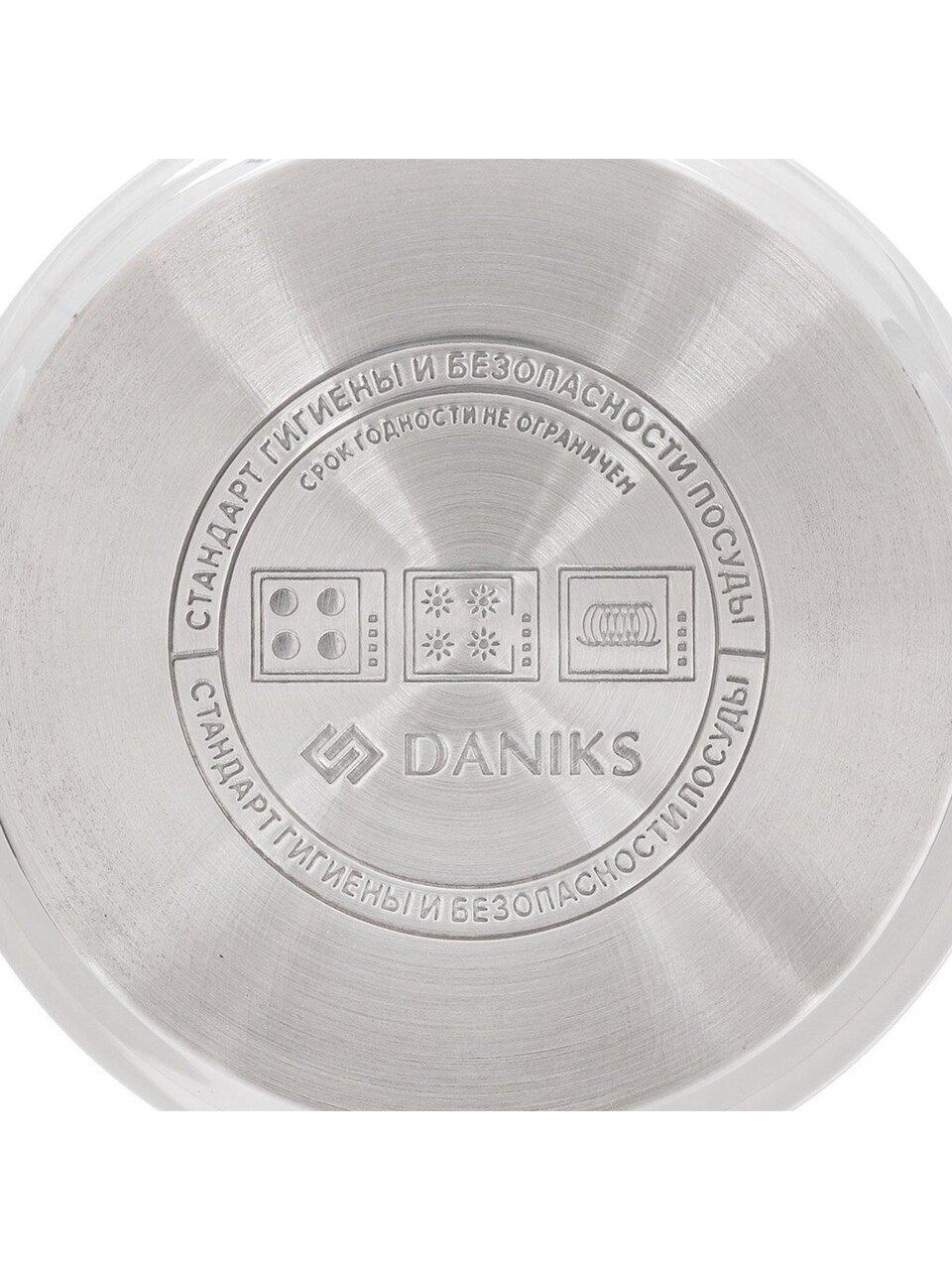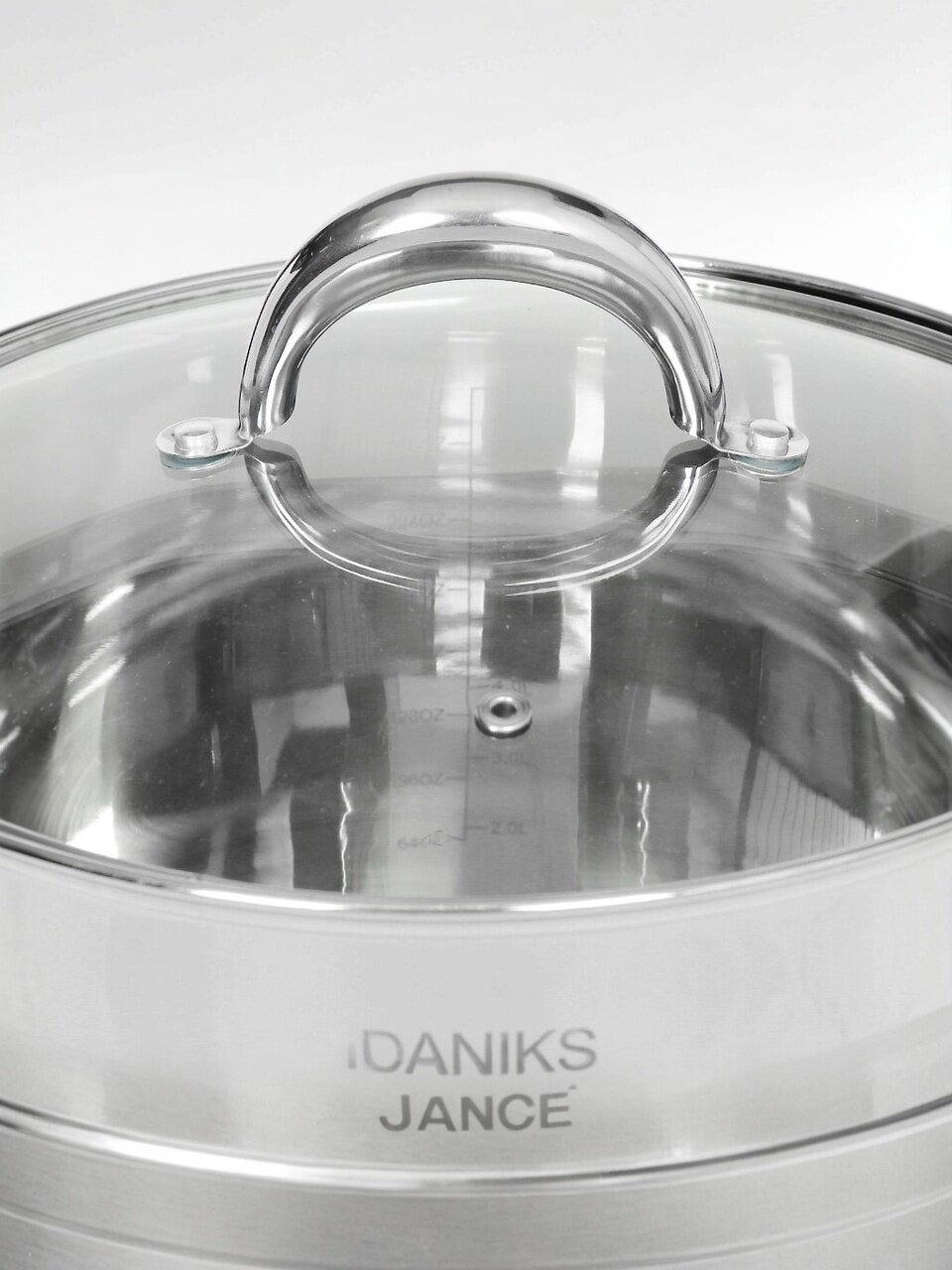 Кастрюля из нержавеющей стали 12 л Daniks: для индукции, с мерной шкалой и стеклянной крышкой — оптимальное решение для кухни, дачи, общепита.