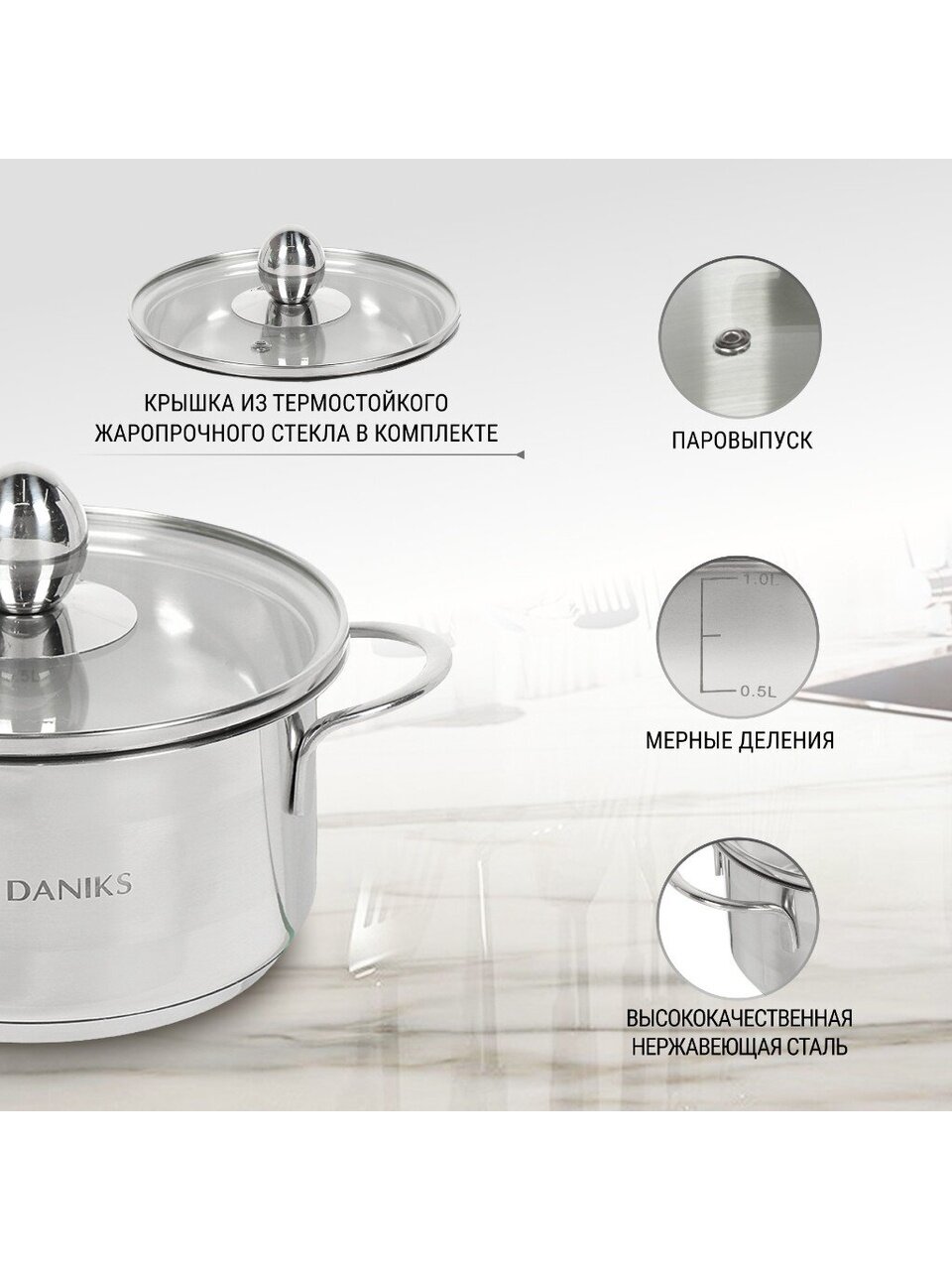 Оформите заказ онлайн — купить недорого кастрюлю из нержавеющей стали для дачи, дома или подарка можно с быстрой доставкой. Качественная посуда Daniks — уверенность в каждом блюде.