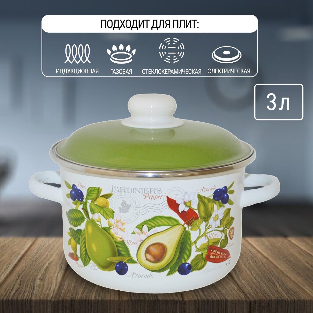 Эмалированная кастрюля 3 л СтальЭмаль «Авокадо» — идеальный выбор для дома и дачи: долговечная сталь, стильный дизайн, выгодная цена