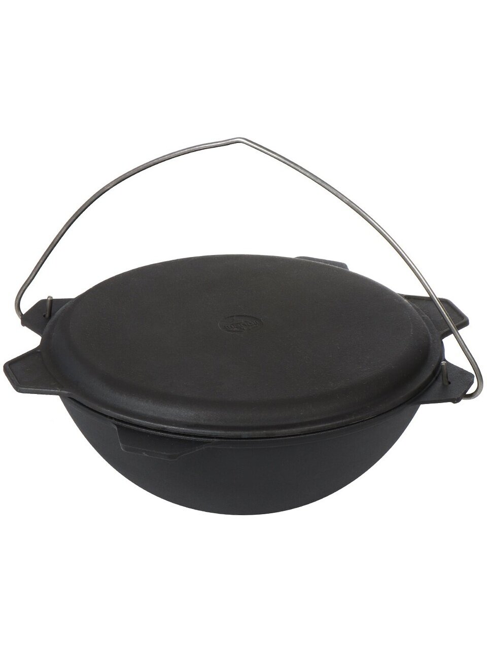 - Литые чугунные ручки-ушки со всех сторон облегчают перемещение крышки и казана с печки на стол.