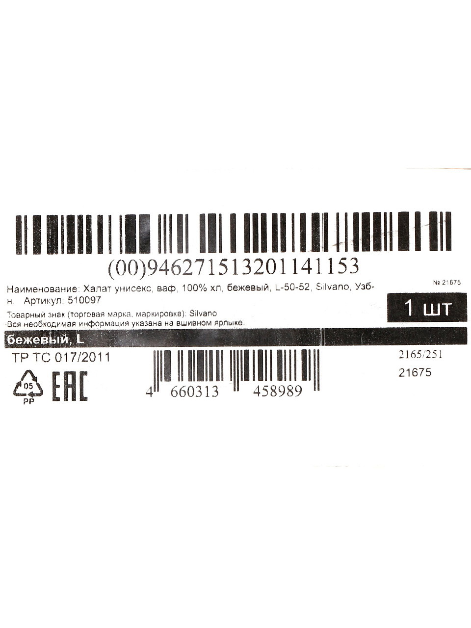 Вы можете приобрести «Халат унисекс, вафельный, 100% хлопок, бежевый, L, 50-52, Silvano» и другие товары в нашем интернет-магазине в Тамбове по низким ценам и с бесплатным самовывозом.