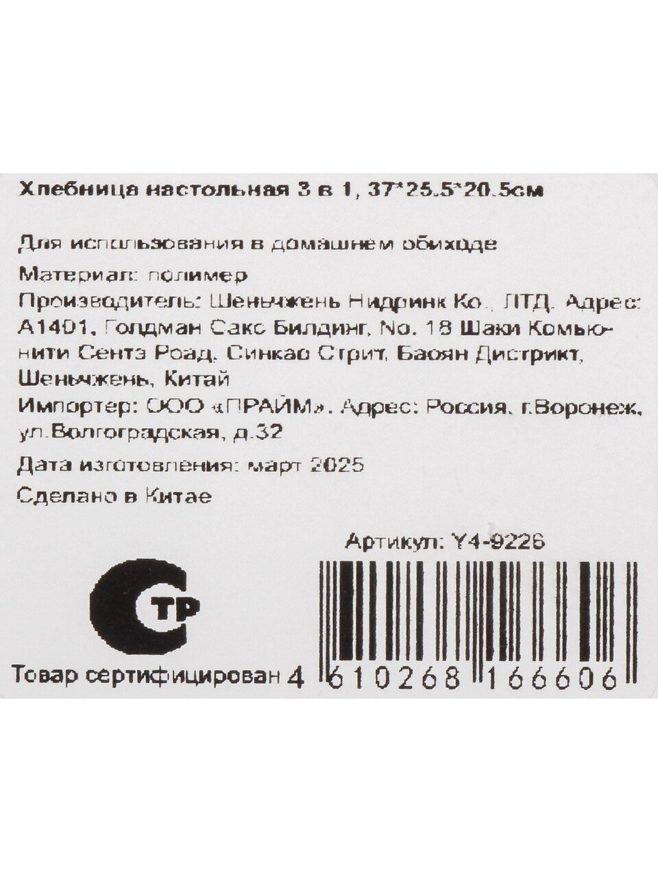 Выбор хлебницы пластик, 37х25.5х20.5 см, 3в1, бел, Y4-9226 — это оптимальное решение для поддержания порядка и чистоты на кухне, удобства хранения и подготовки продуктов, а также стильного дополнения к интерьеру. Получите максимум пользы от одного аксессуара и наслаждайтесь комфортом в каждом дне!
