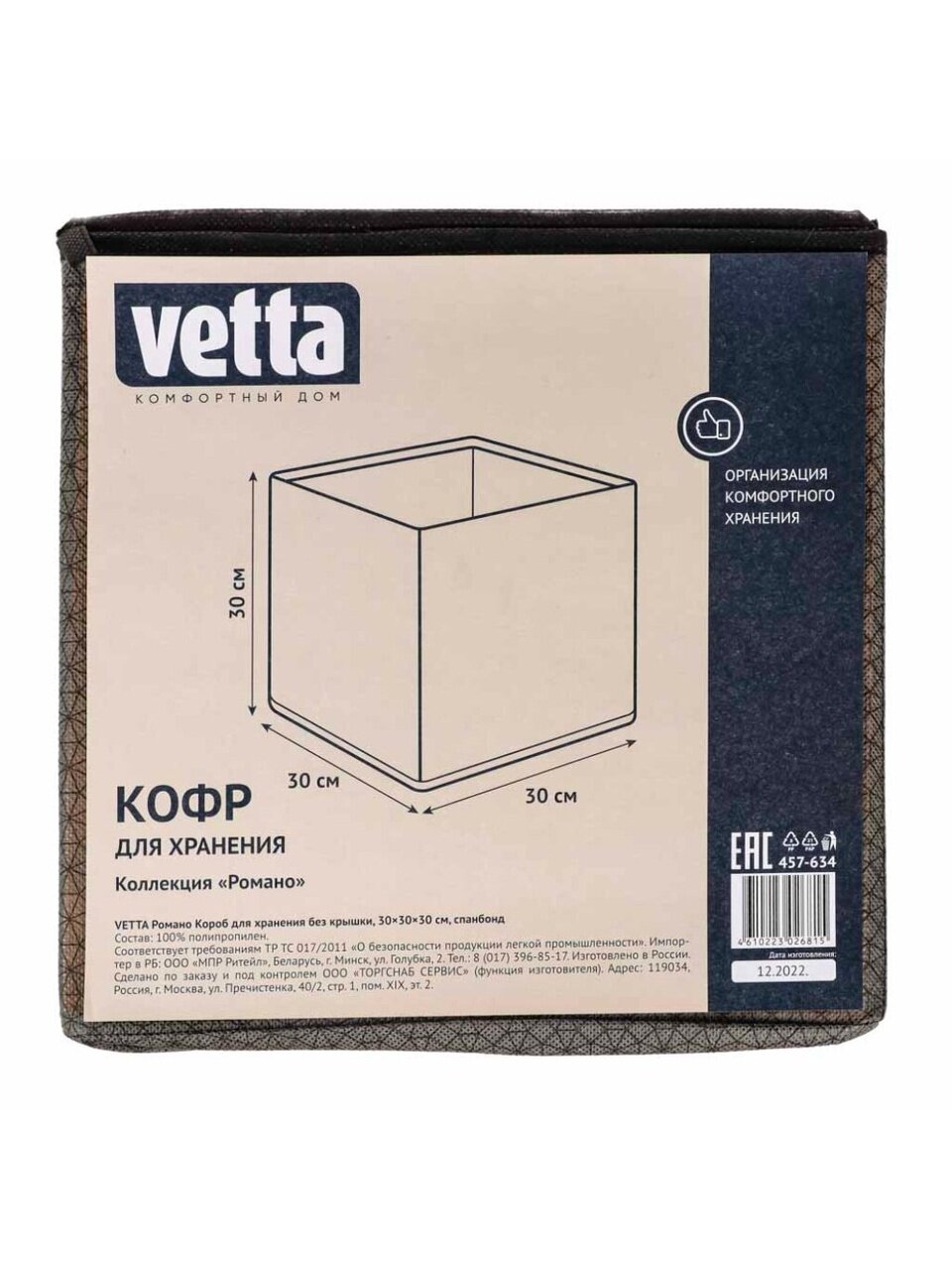 Вы можете приобрести «Короб для хранения, 1 секция, складной, 30х30х30 см, спанбонд, складной, без крышки, Vetta, Романо, 457-634» и другие товары в нашем интернет-магазине в Белгороде по низким ценам и с бесплатным самовывозом.