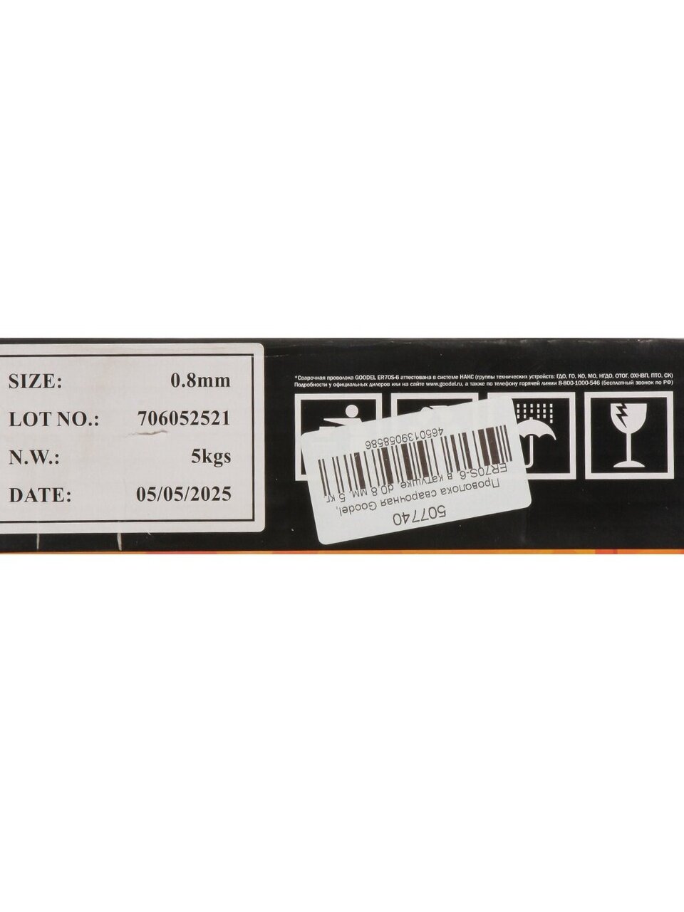 Проволока сварочная Goodel ER70S-6 d0,8 мм — оптимальный выбор для точной сварки: стабильная дуга, низкие брызги, 5 кг для длительной работы.