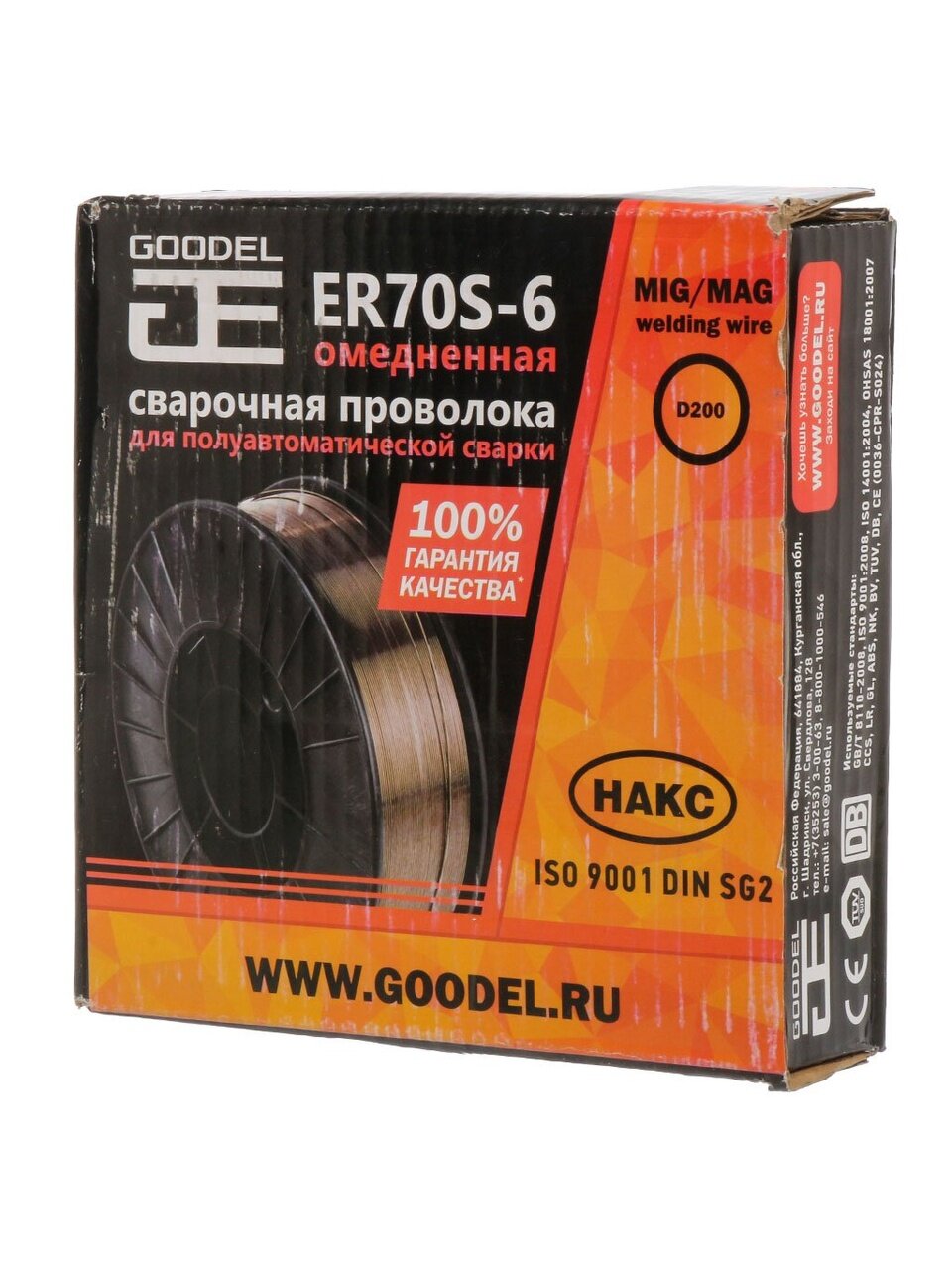 Проволока Goodel ER70S-6 поставляется в катушке весом 5 кг, диаметр проволоки — 0,8 мм, артикул: С70D20008J.