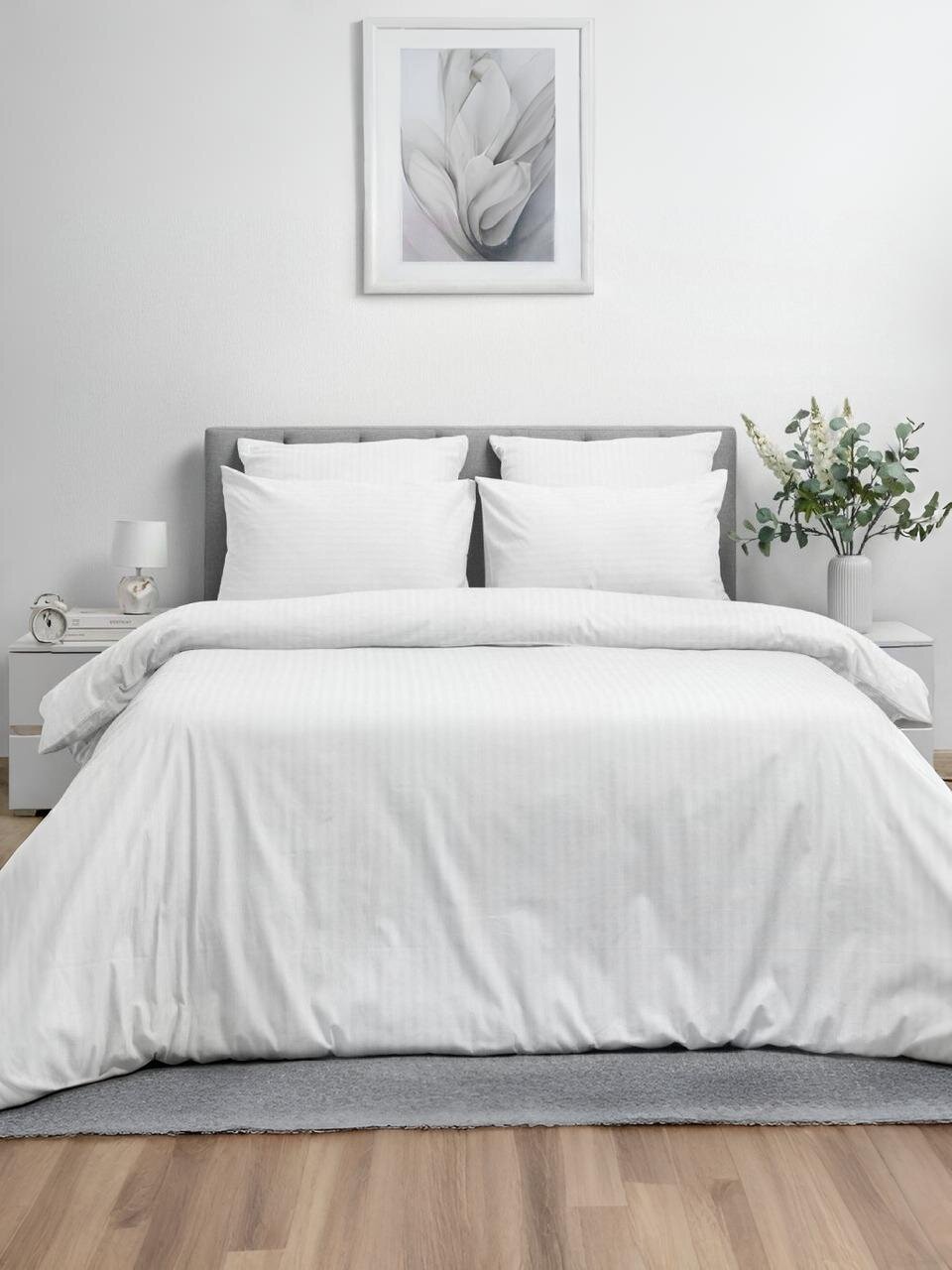 Премиальное постельное белье евро Волшебная ночь Warm white 8709/2: 100% хлопок страйп-ранфорс, простыня 220х240 см, подарочная упаковка — для безупречного сна и стильного интерьера.