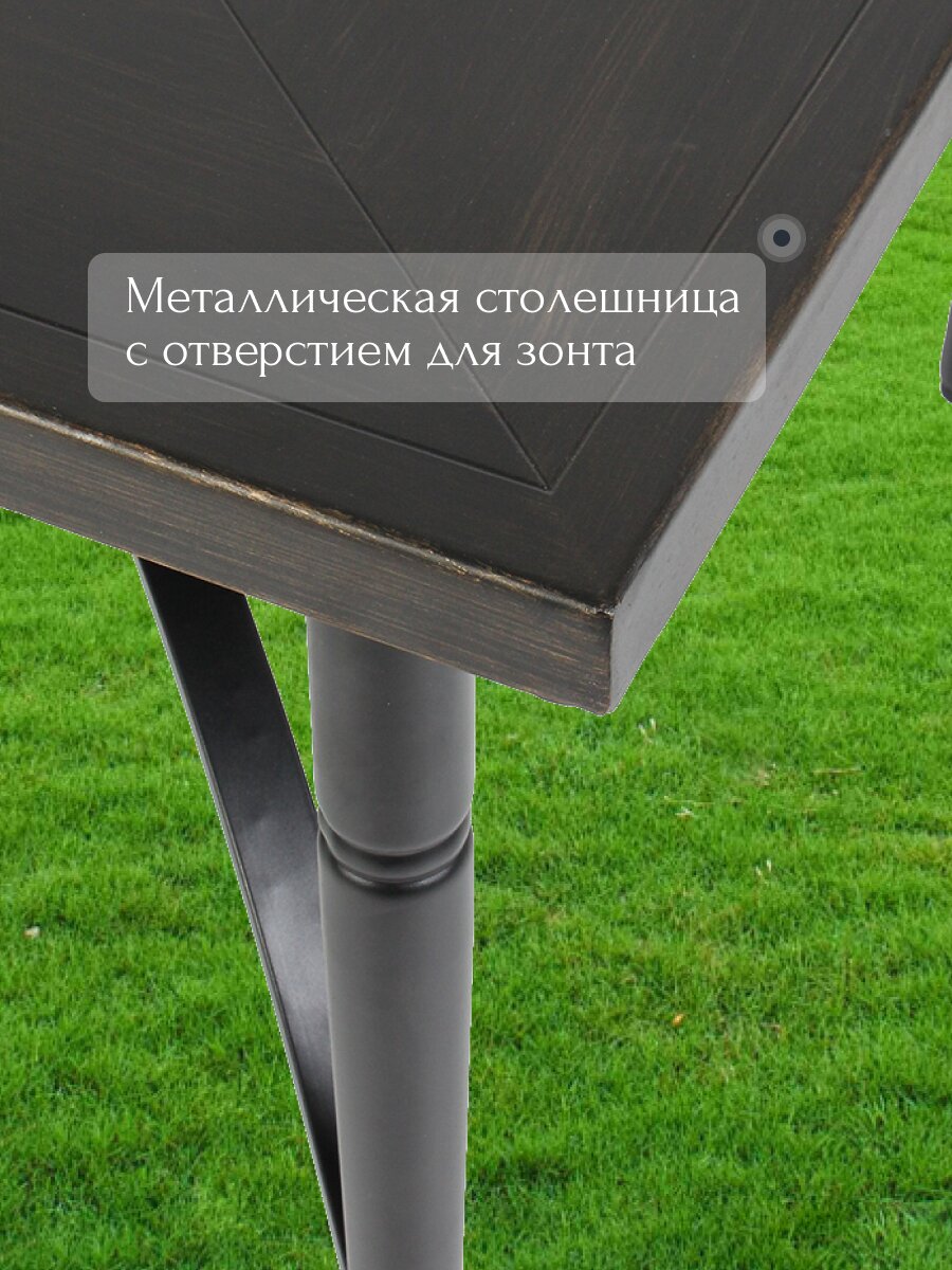 - отверстие для зонта в центре столешницы – возможность создать тень в жаркий день;