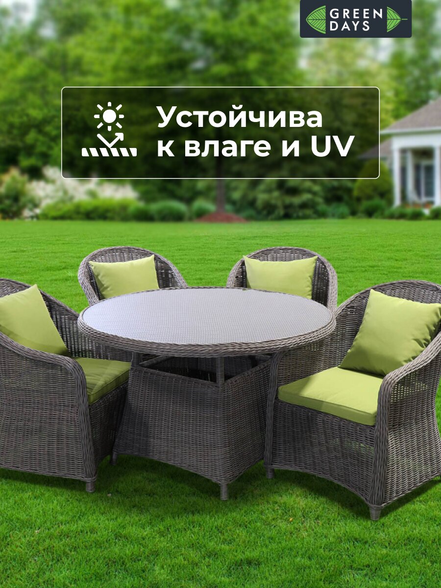 Вы можете приобрести «Мебель садовая Green Days, Элит Премиум, серая, стол, 118х118х75 см, 4 кресла, подушка зеленая, CYH1830W-1» и другие товары в нашем интернет-магазине в Белгороде по низким ценам и с бесплатным самовывозом.
