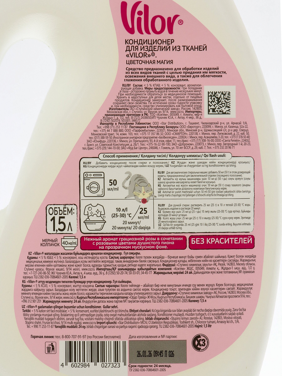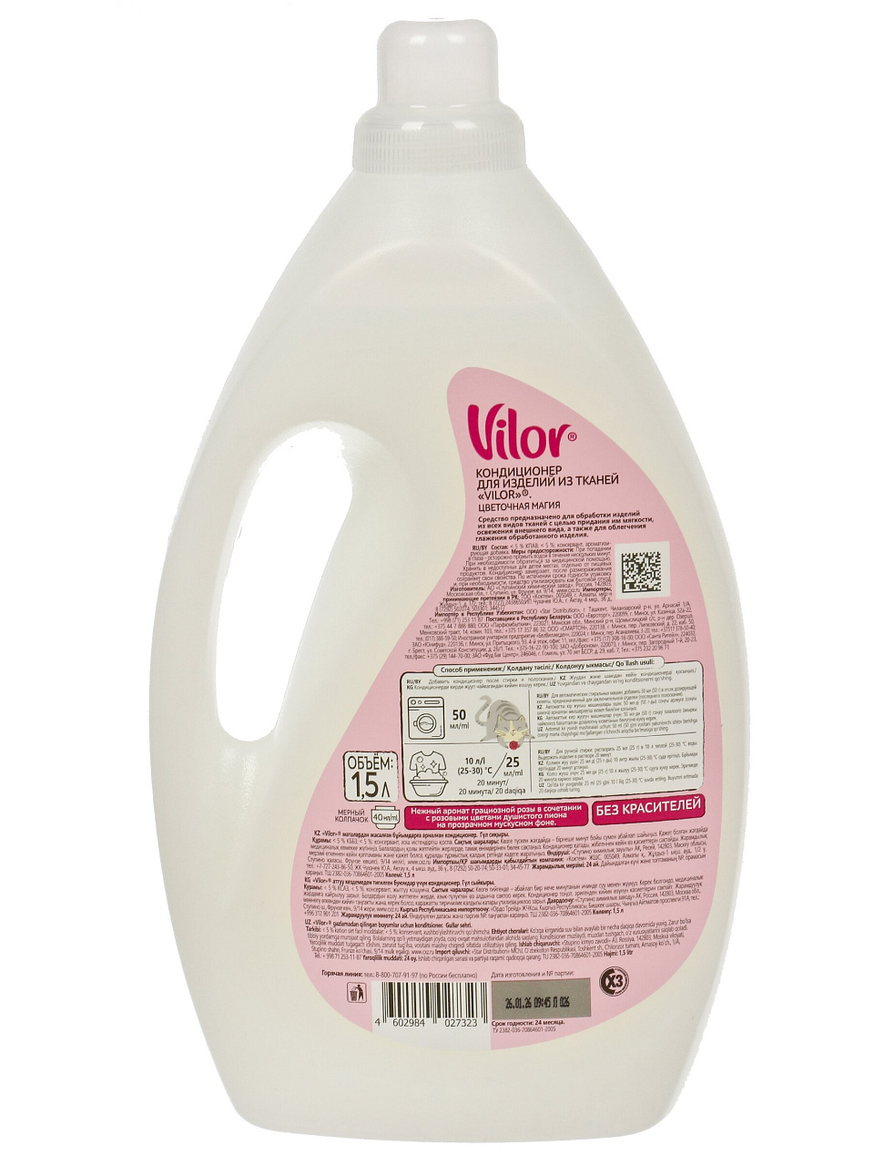 Вы можете приобрести «Кондиционер для белья Vilor, 1.5 л, Цветочная магия» и другие товары в нашем интернет-магазине в Ярославле по низким ценам и с бесплатным самовывозом.