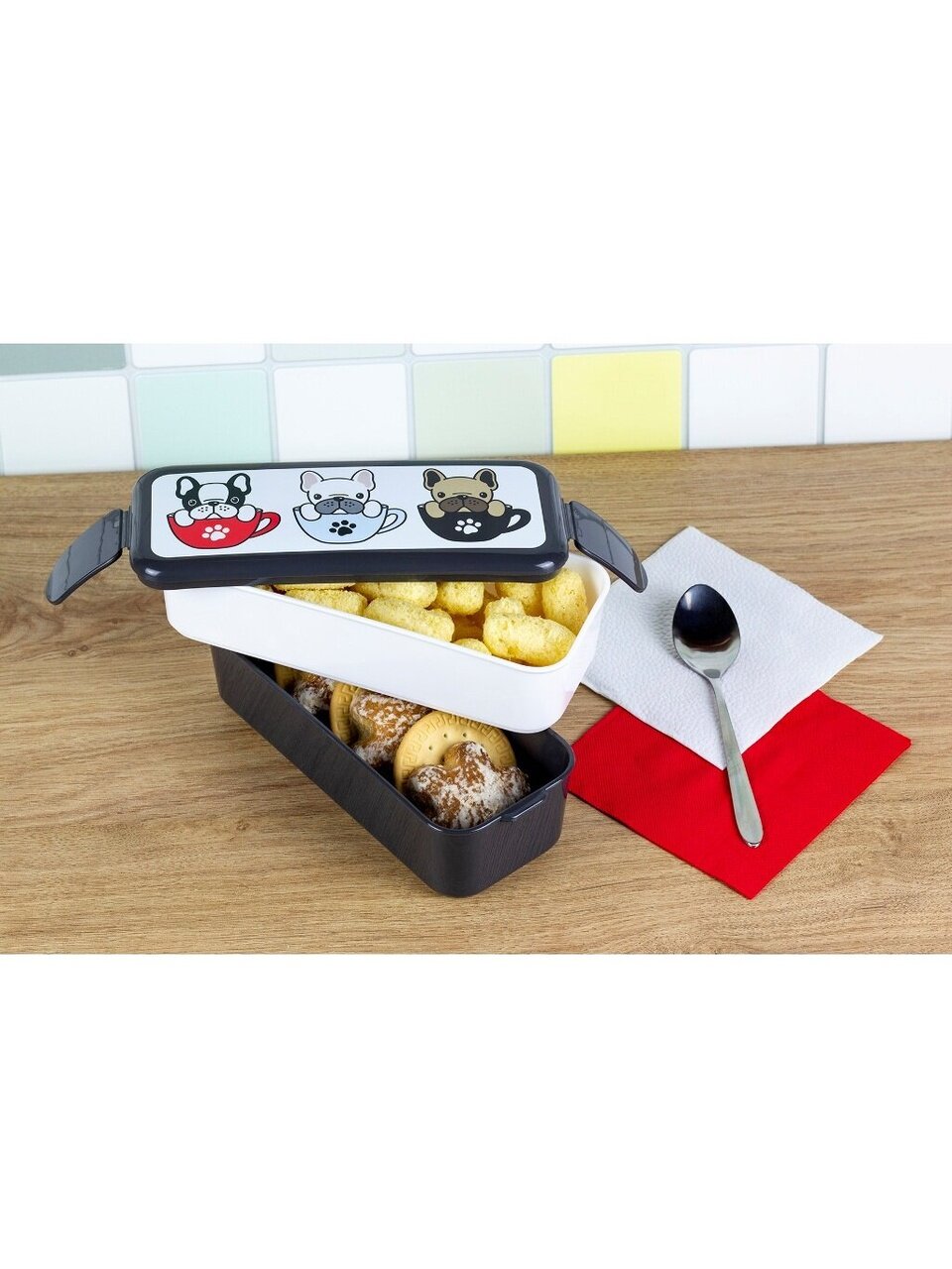 Контейнер пищевой для обеда с коллекционным дизайном "Бульдоги" — отличный выбор, если вы ищете недорогой ланч-бокс для школы, офиса или дачи. Благодаря двум независимым секциям по 0.5 л каждая, контейнер подходит для хранения разных блюд: супа, салата, гарнира или фруктов. Герметичная крышка с надёжной защёлкой предотвращает проливание, что особенно важно при транспортировке в рюкзаке или сумке.