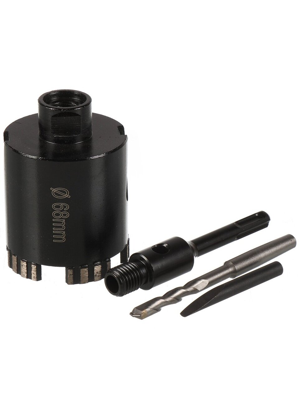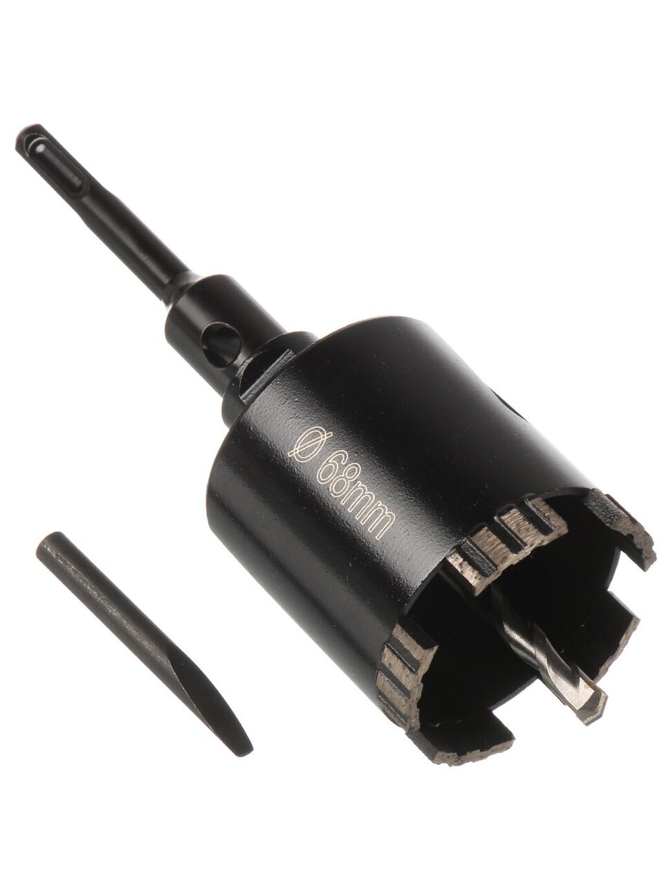 Диаметр коронки 68х70 мм позволяет создавать отверстия оптимального размера, соответствующие большинству строительных задач. Благодаря сухому типу реза, процесс сверления становится максимально комфортным и безопасным.