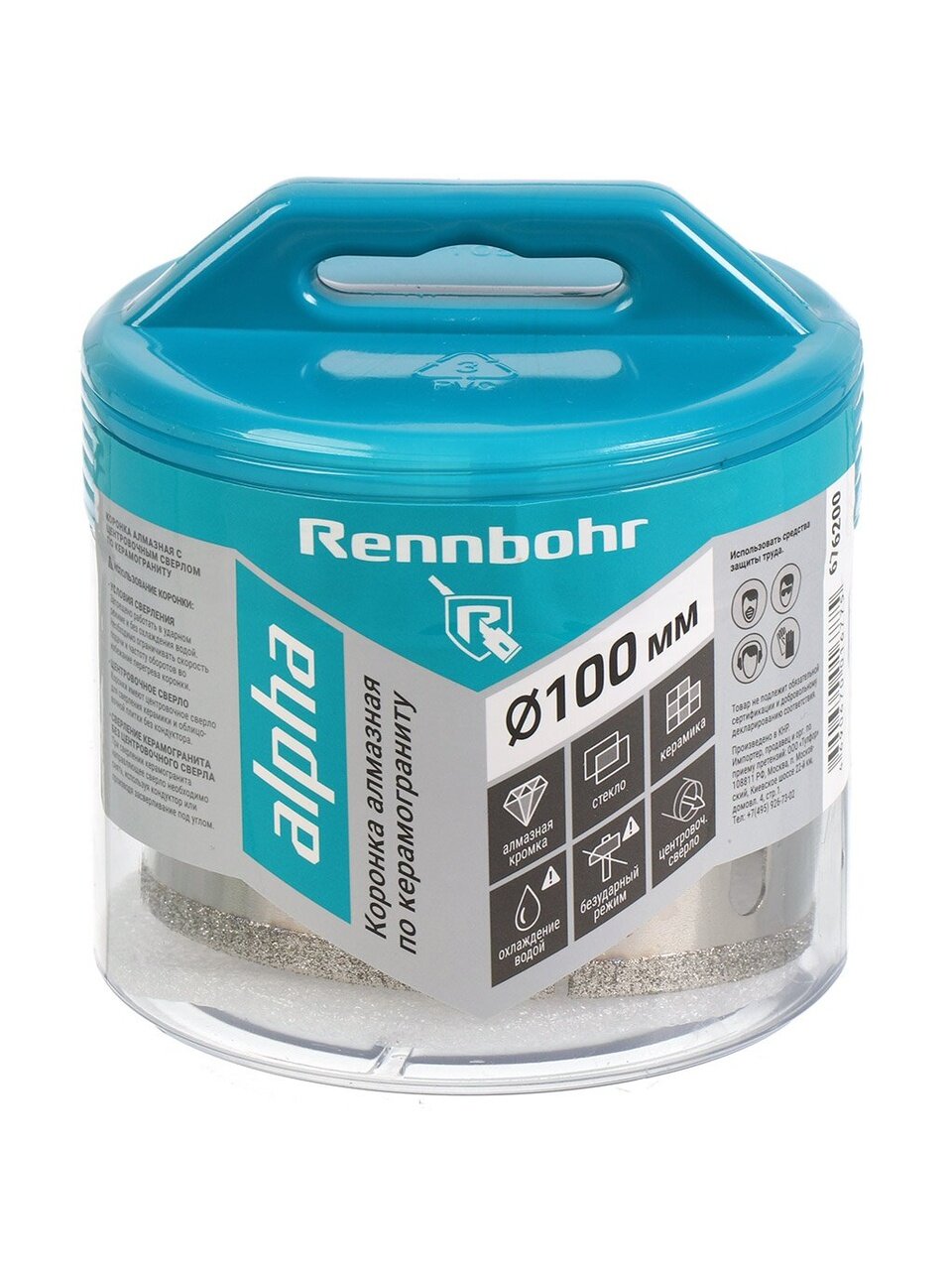 Откройте новые горизонты в работе с керамогранитом и керамикой с алмазной коронкой Rennbohr. Это профессиональное оборудование станет незаменимым помощником в вашем арсенале инструментов. Коронка Rennbohr диаметром 100 мм создана для тех, кто ценит точность и надежность в каждом резе. С ней работа становится не только эффективной, но и приятной.