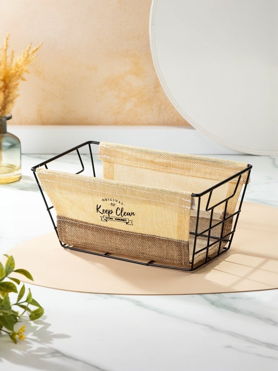 Эта стильная корзина для хранения станет идеальным решением для организации пространства в любом интерьере. Сочетание коричневого и бежевого цветов добавляет изысканности, а текстильная вкладка обеспечивает защиту и мягкость. Незаменима для ванной комнаты или в качестве декоративного элемента.