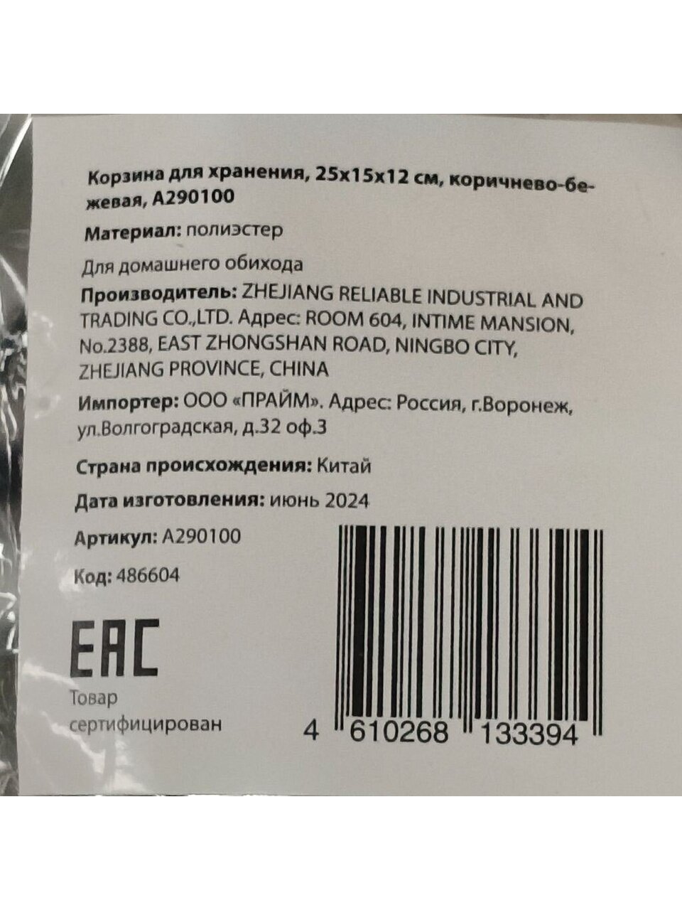 Вы можете приобрести «Корзина для хранения, 25х15х12 см, прямоугольная, коричнево-бежевая, A290100» и другие товары в нашем интернет-магазине в Белгороде по низким ценам и с бесплатным самовывозом.