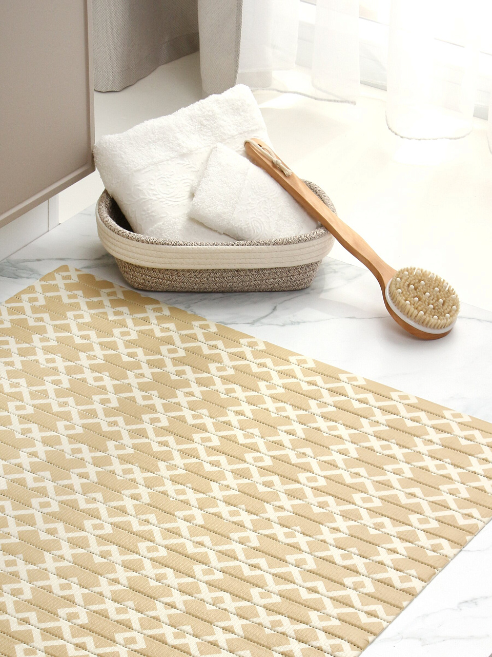 Если вы ищете, какой коврик для ванной лучше выбрать для семьи, обратите внимание на влаговпитывающий эффект и приятный орнамент, который впишется в любой интерьер. Коврик не требует специального ухода: достаточно промыть водой, чтобы сохранить свежесть и чистоту. Не содержит присосок и основы, что упрощает перемещение и уборку.