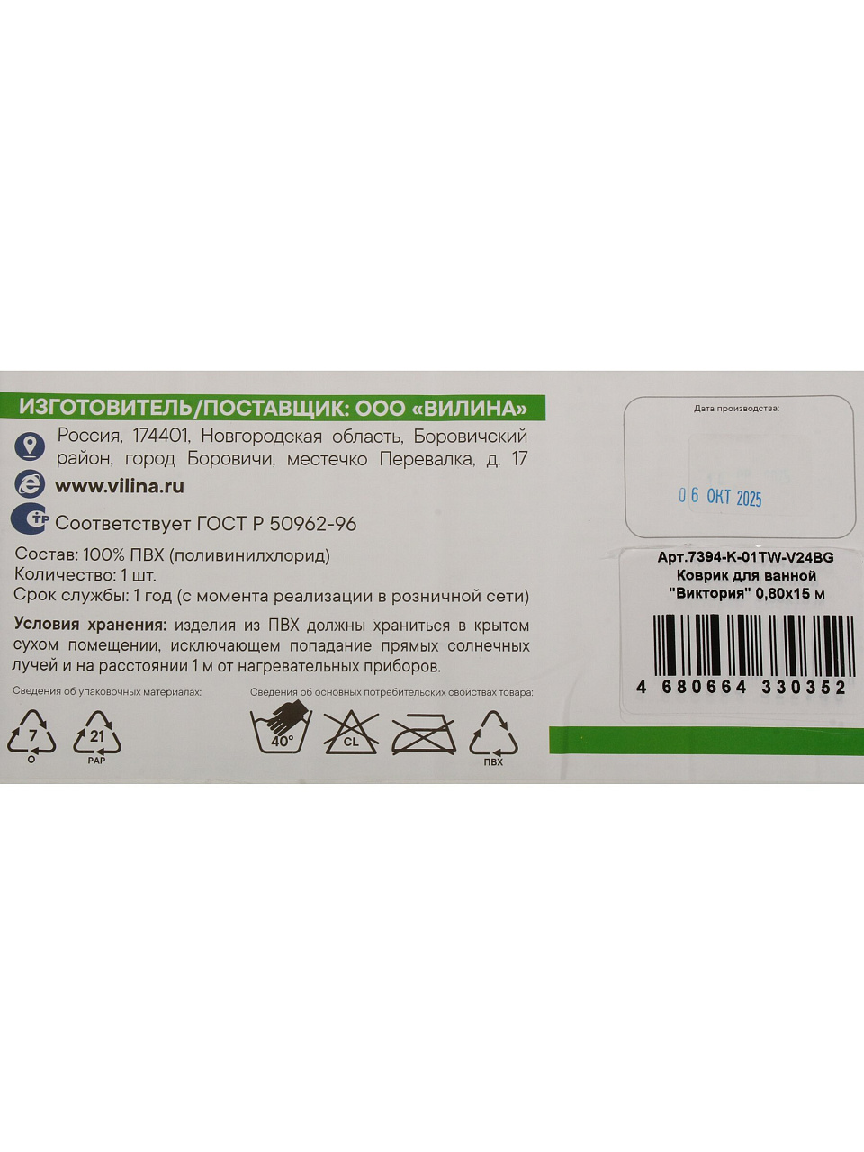 Коврик для ванной комнаты Вилина Виктория — это современное решение для безопасности и уюта в доме. Благодаря вспененному ПВХ, коврик не скользит даже на влажной плитке, что особенно важно для семей с детьми или пожилыми людьми. Часто спрашивают: «Какой коврик выбрать для ванной, чтобы не скользил?» — этот вариант максимально отвечает требованиям по безопасности и простоте ухода.