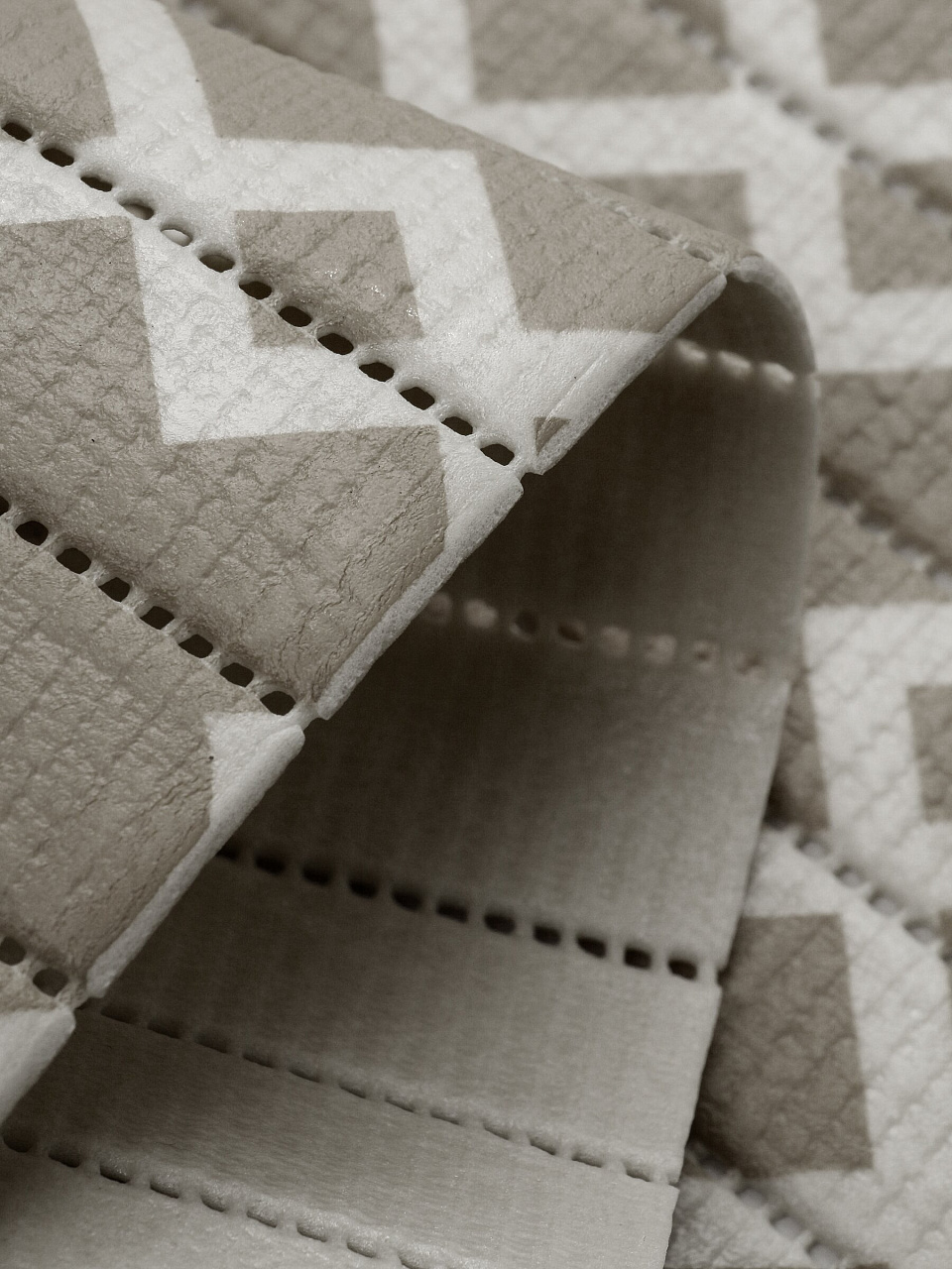 Антискользящий коврик из вспененного ПВХ быстро сохнет, не впитывает влагу, легко моется и обеспечивает надежную фиксацию на полу без присосок.