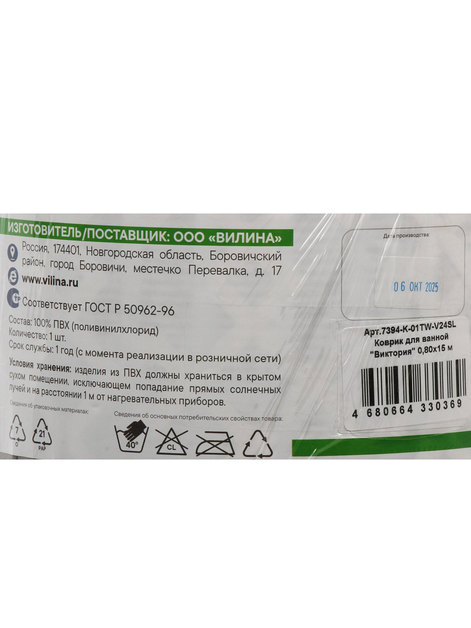 Коврик для ванной 0.8х15 м Вилина Виктория V24SL — безопасное и стильное решение для ванной комнаты, которое защитит от скольжения и обеспечит комфорт на долгие годы.