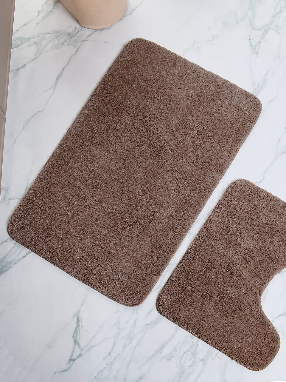 Если вы сравниваете, что лучше для ванной — коврик с рисунком или без, обратите внимание на лаконичный дизайн этой модели: отсутствие рисунка делает её универсальной и немаркой. В отличие от аналогов с прорезиненной основой, этот набор не имеет антискользящей подложки и присосок, что важно для тех, кто ищет максимально простое и быстрое решение для периодической замены текстиля.
