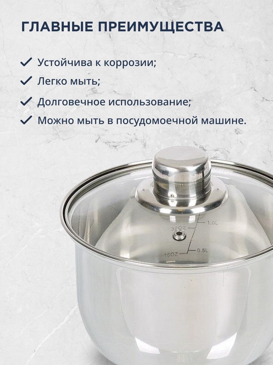 - Подходит для использования на газовых, электрических и стеклокерамических плитах.