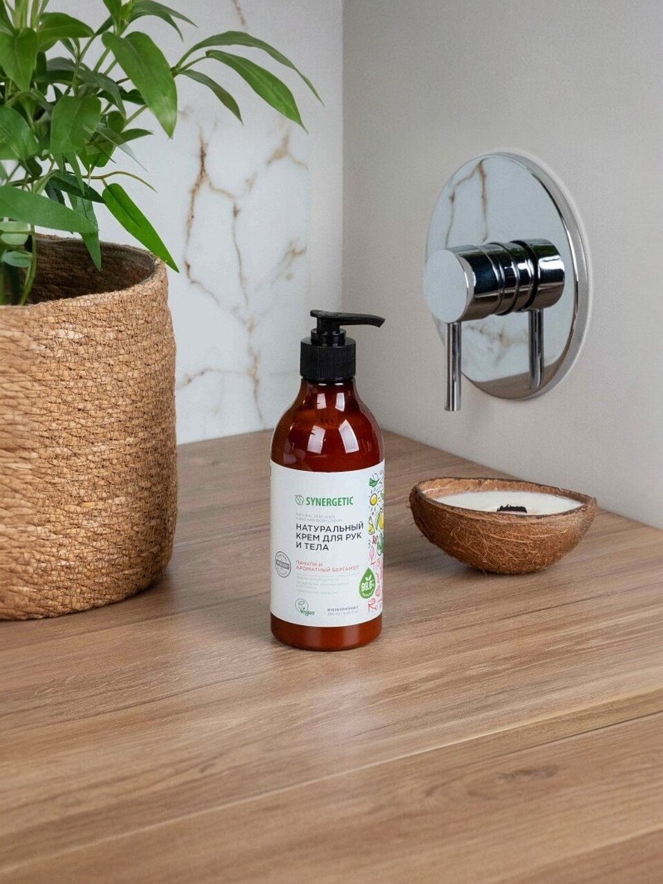 Теплый, одновременно цветочный и свежий, пряный и окутывающий аромат крема для рук и тела «Пачули и ароматный бергамот» от SYNERGETIC позволяет забыть о проблемах и погрузиться в атмосферу релакса.
